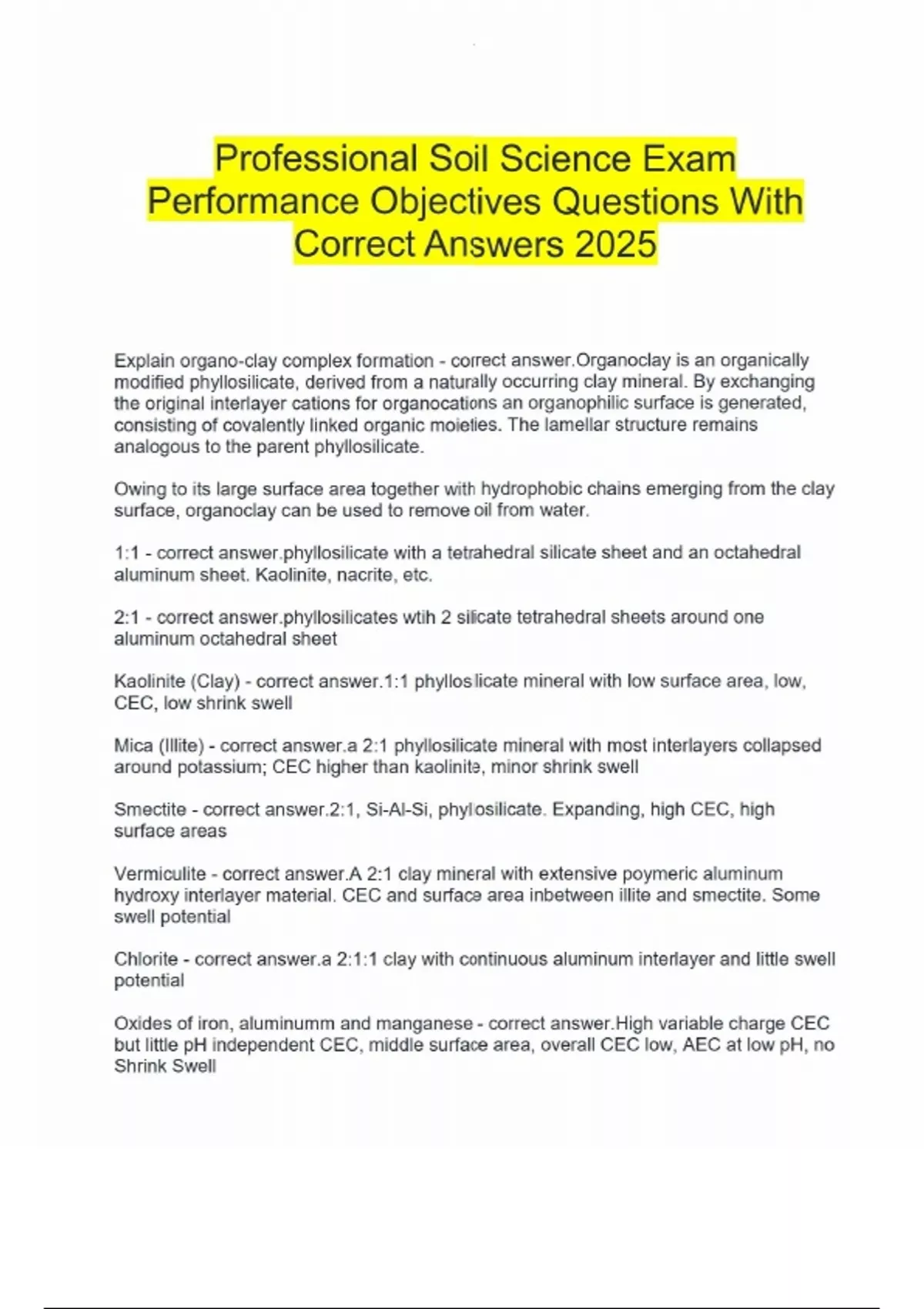 Professional Soil Science Exam Performance Objectives Questions With Correct Answers 2025