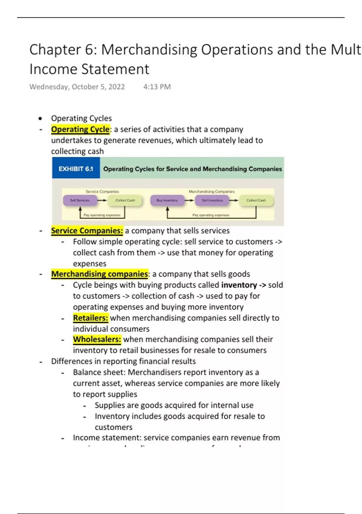 • Operating Cycles