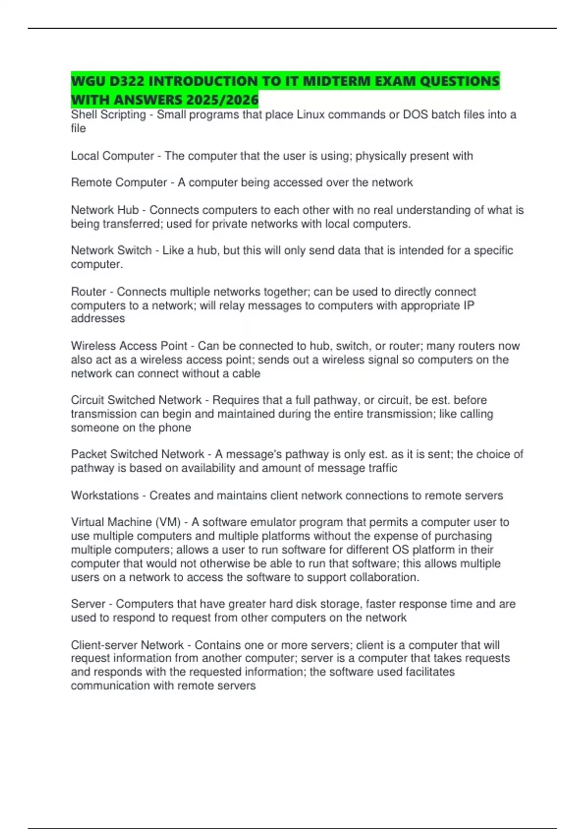 WGU D322 INTRODUCTION TO IT MIDTERM EXAM QUESTIONS