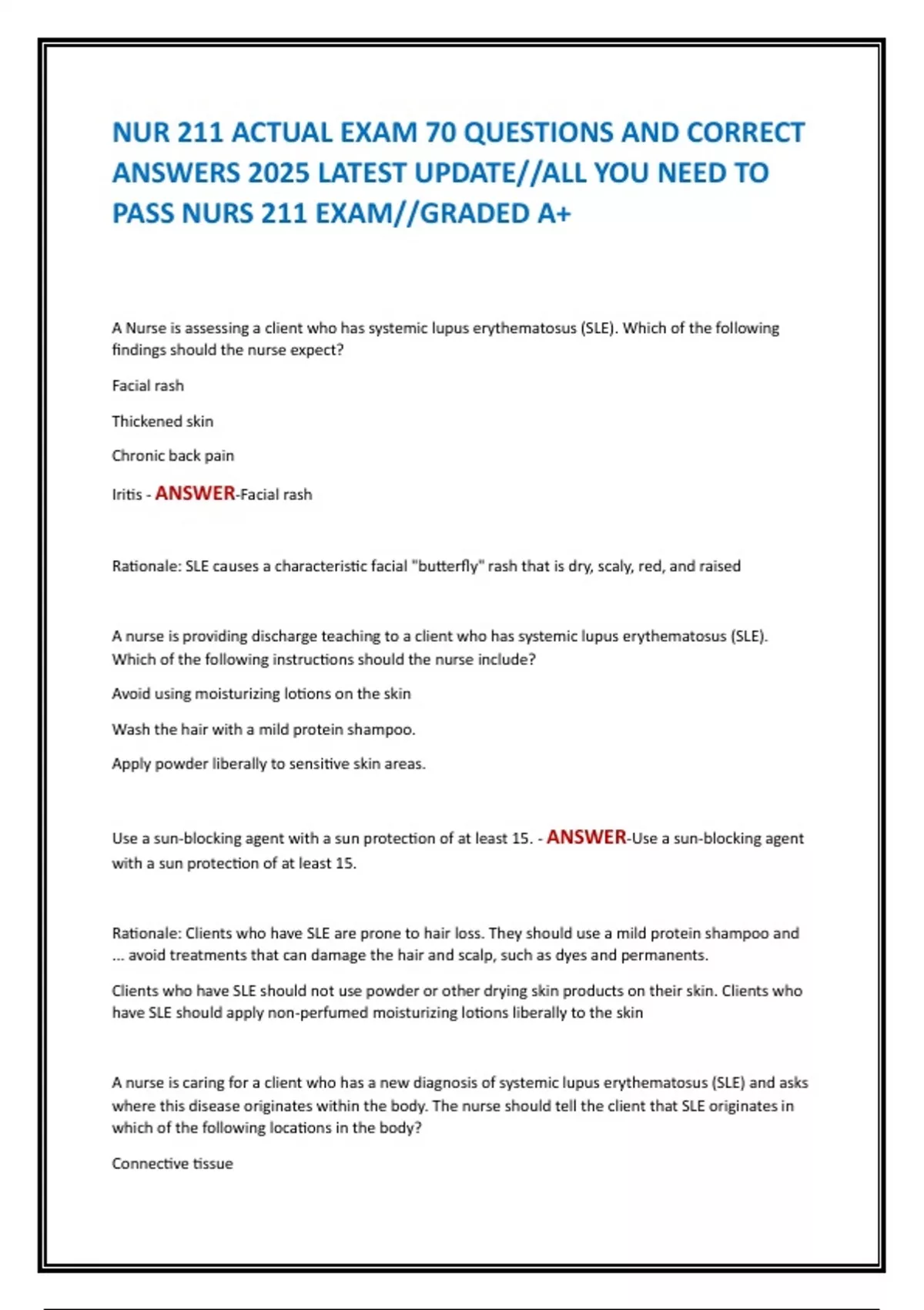 Rationale: SLE originates in the connective tissues of the body and affects all organ systems.