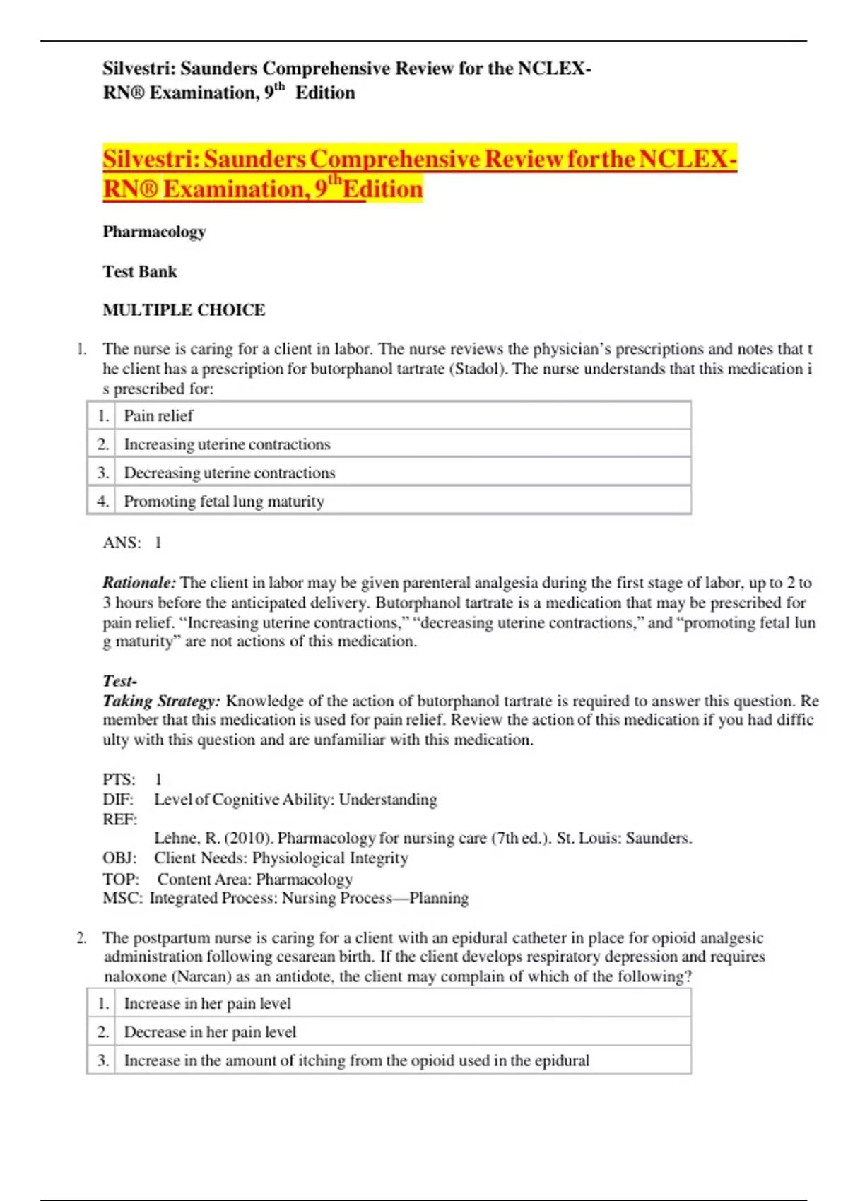 , Silvestri: Saunders Comprehensive Review for the NCLEX- 1i 1i 1i 1i 1i 1i