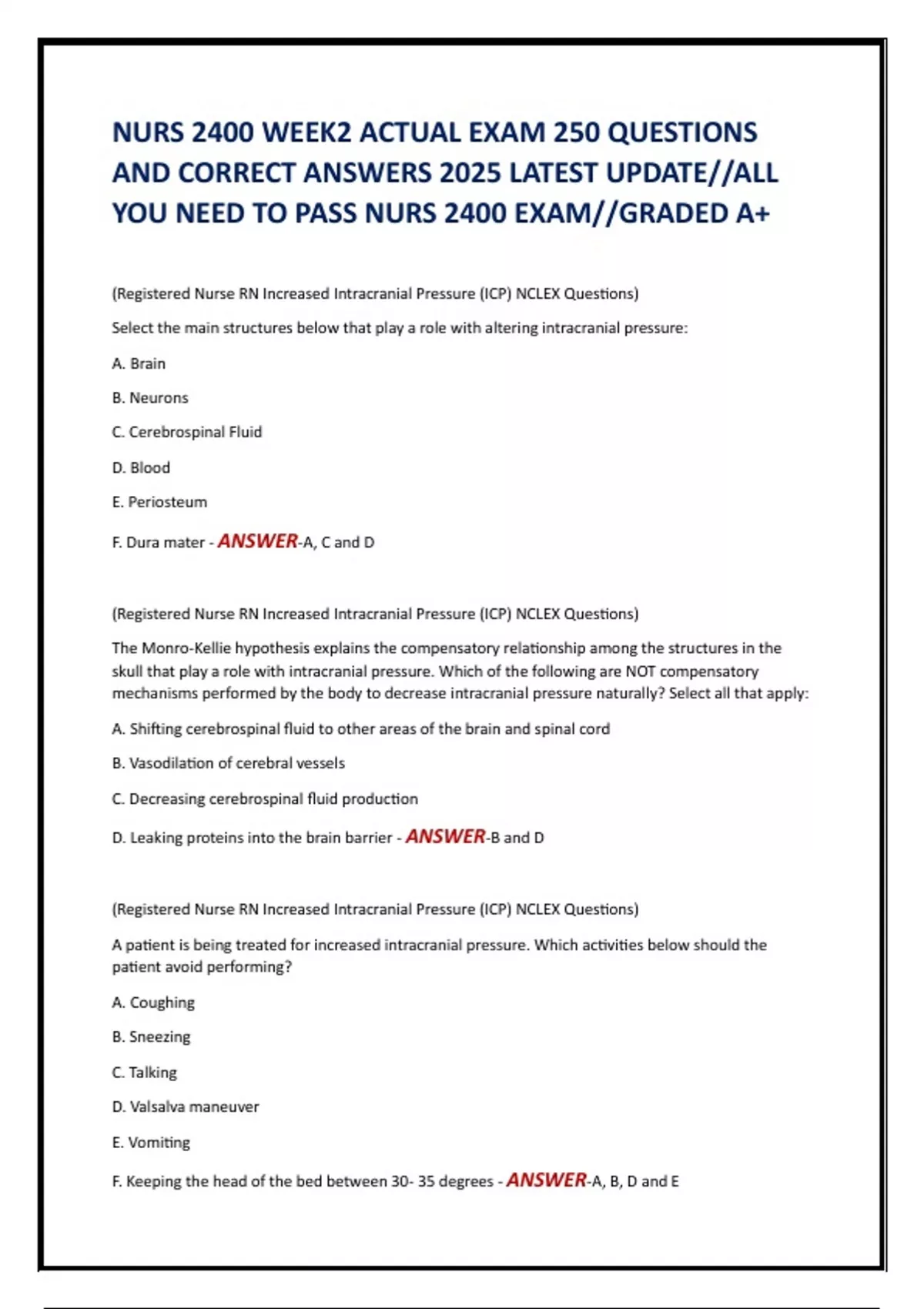 (Registered Nurse RN Increased Intracranial Pressure (ICP) NCLEX Questions)