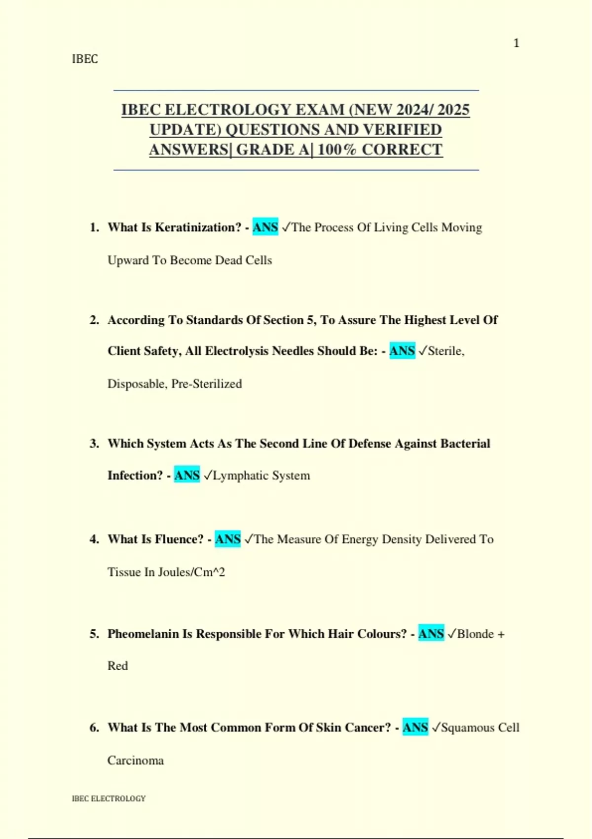 IBEC ELECTROLOGY EXAM (NEW 2024/ 2025