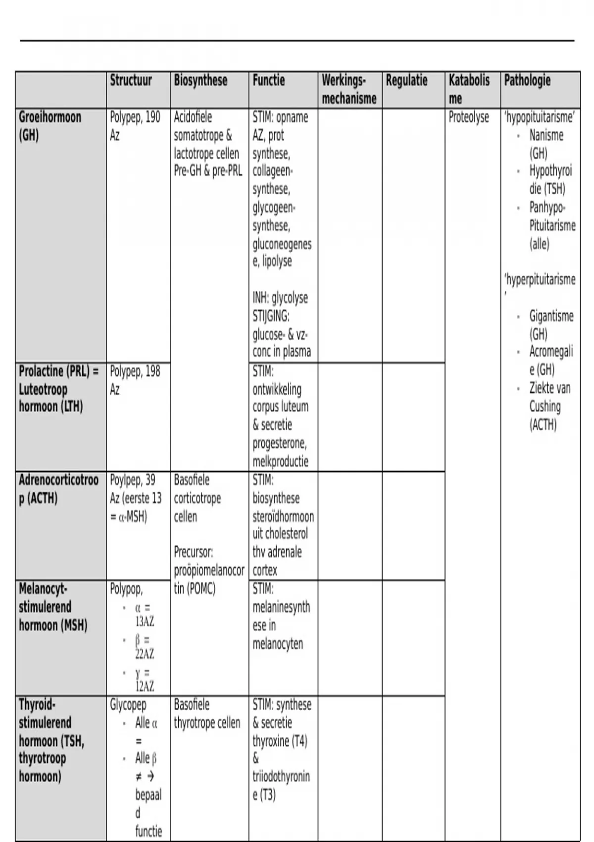 Groeihormoon Polypep, 190 Acidofiele STIM: opname Proteolyse ‘hypopituitarisme’