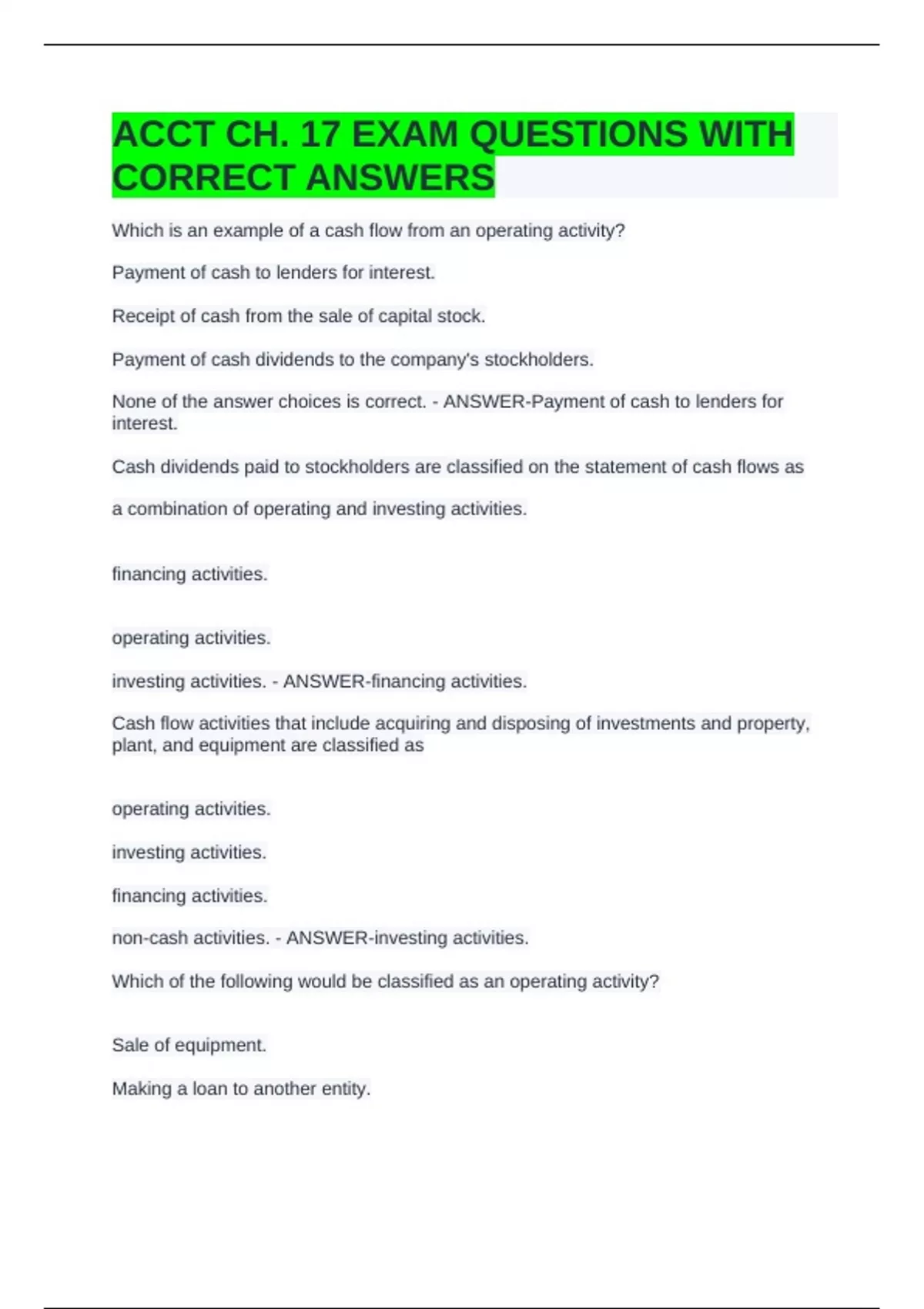 Payment of a cash dividend. - ANSWER-Payment of interest.