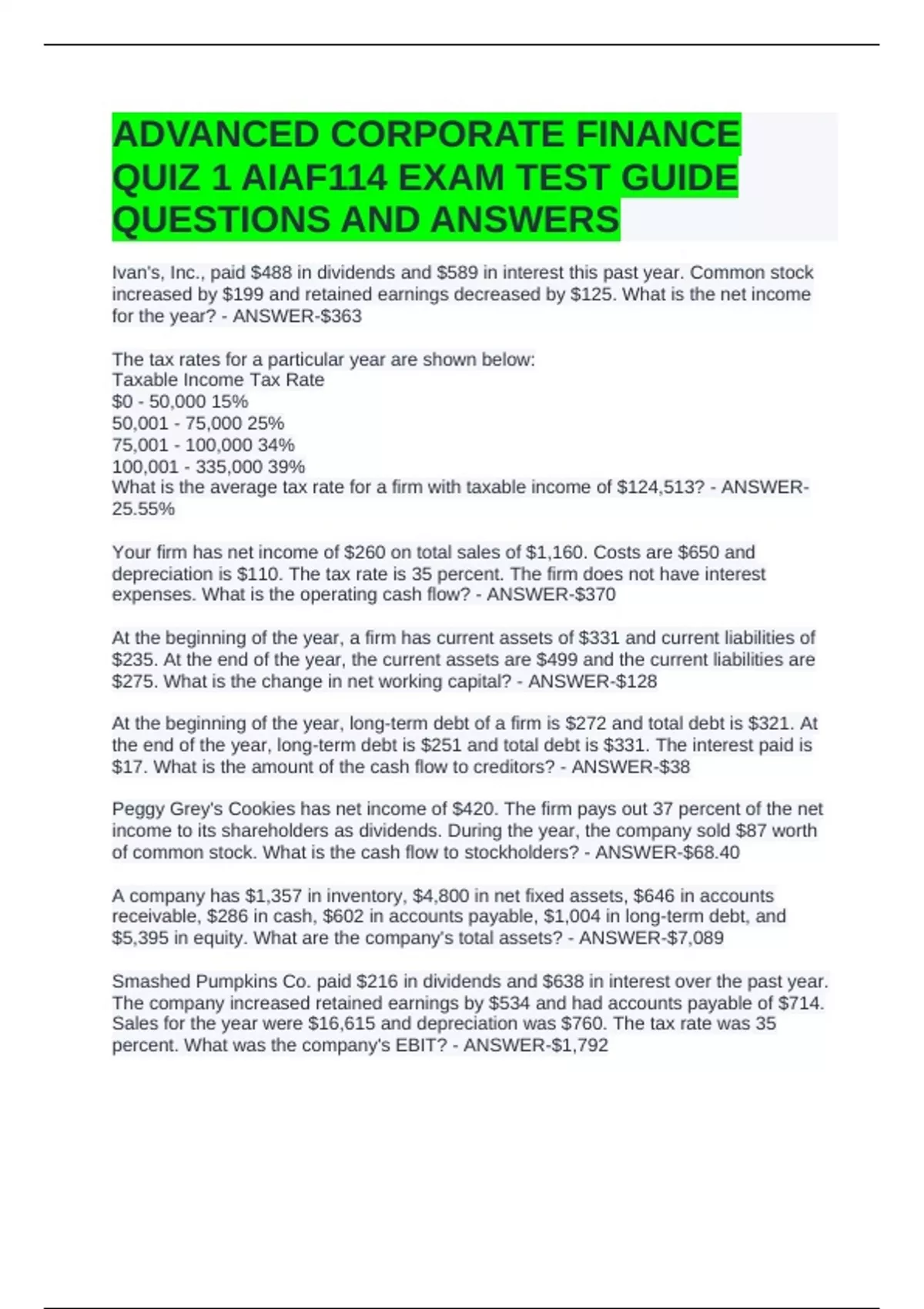QUIZ 1 AIAF114 EXAM TEST GUIDE