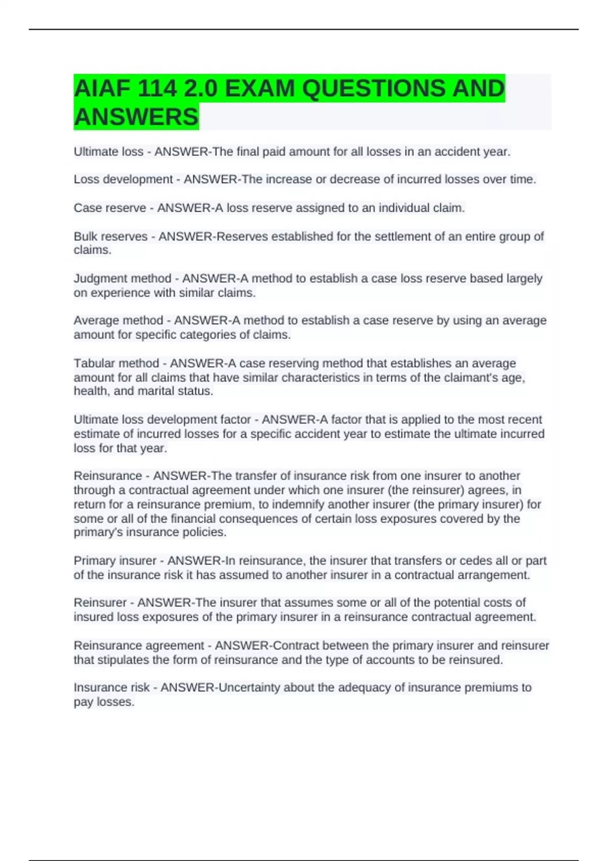 AIAF 114 2.0 EXAM QUESTIONS AND