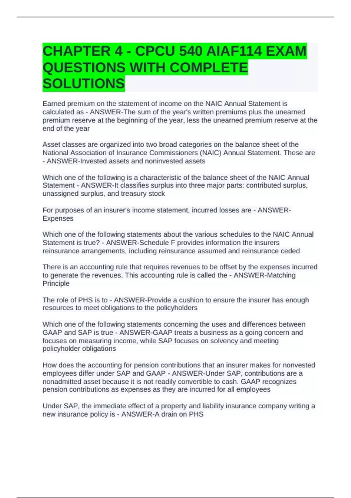 CHAPTER 4 - CPCU 540 AIAF114 EXAM