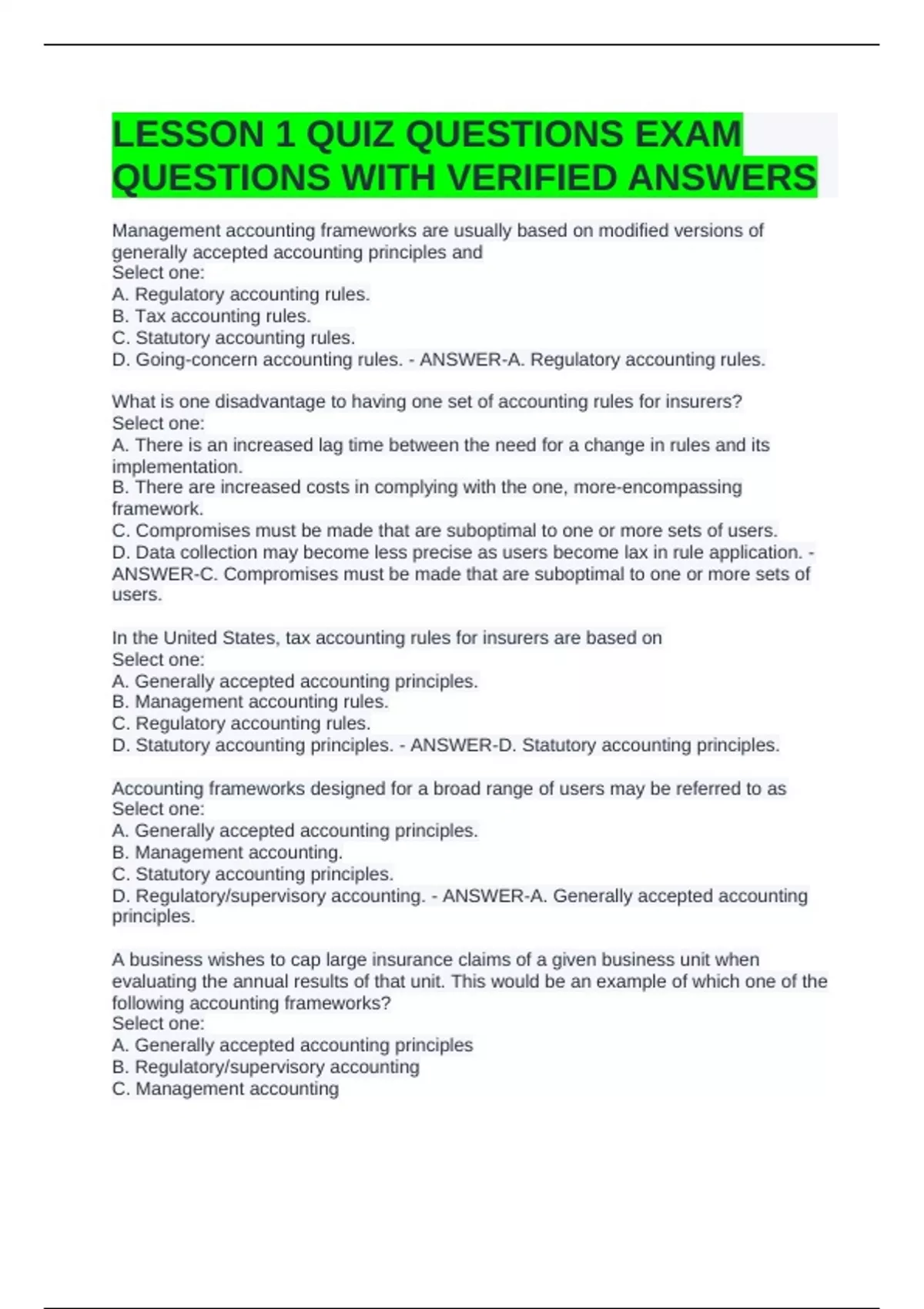 D. Statutory accounting principles. - ANSWER-D. Statutory accounting principles.