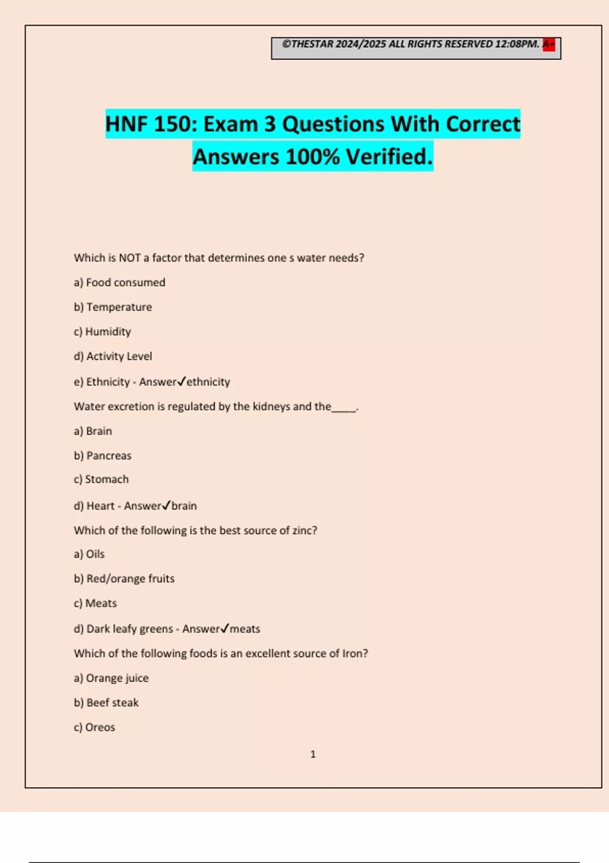 HNF 150: Exam 3 Questions With Correct