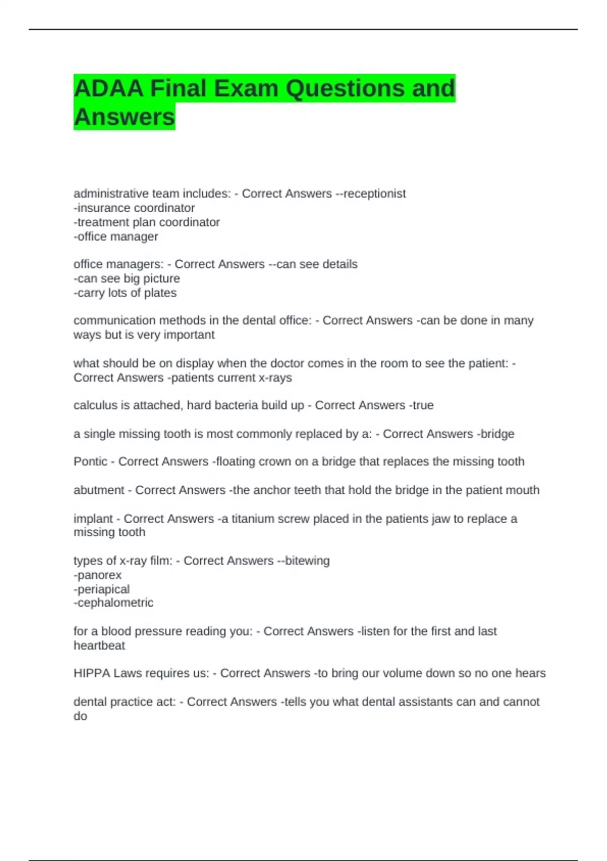 dental practice act: - Correct Answers -tells you what dental assistants can and cannot