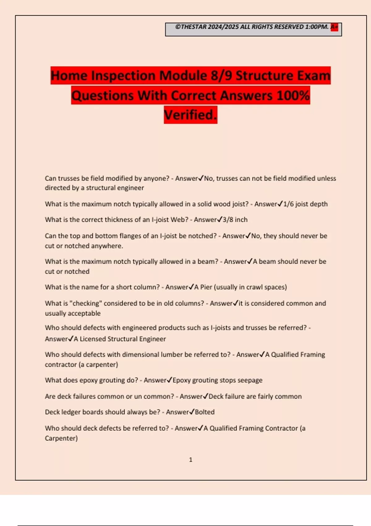 Home Inspection Module 8/9 Structure Exam