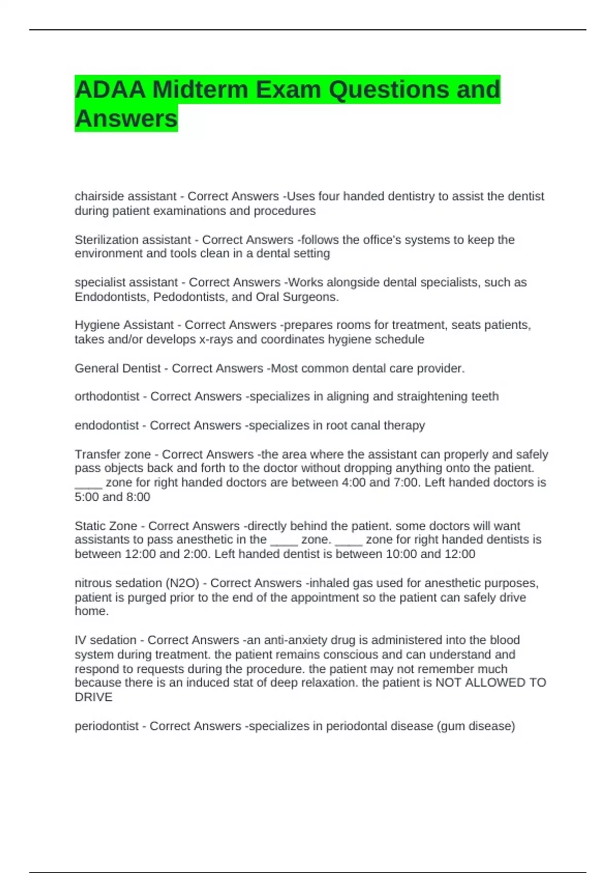 specialist assistant - Correct Answers -Works alongside dental specialists, such as