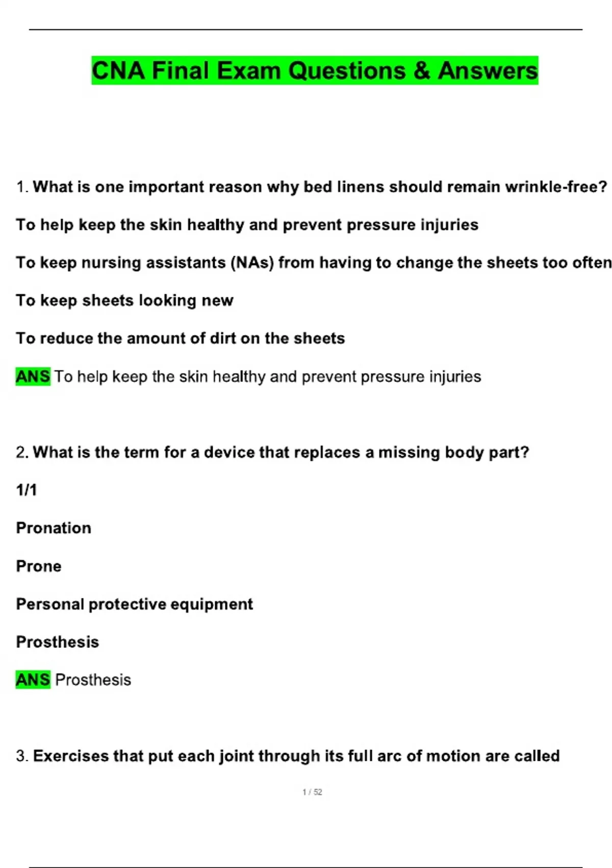 CNA Final Exam (Latest 2025 / 2026 Update) Questions and Verified Answers | 100% Correct | Grade A+