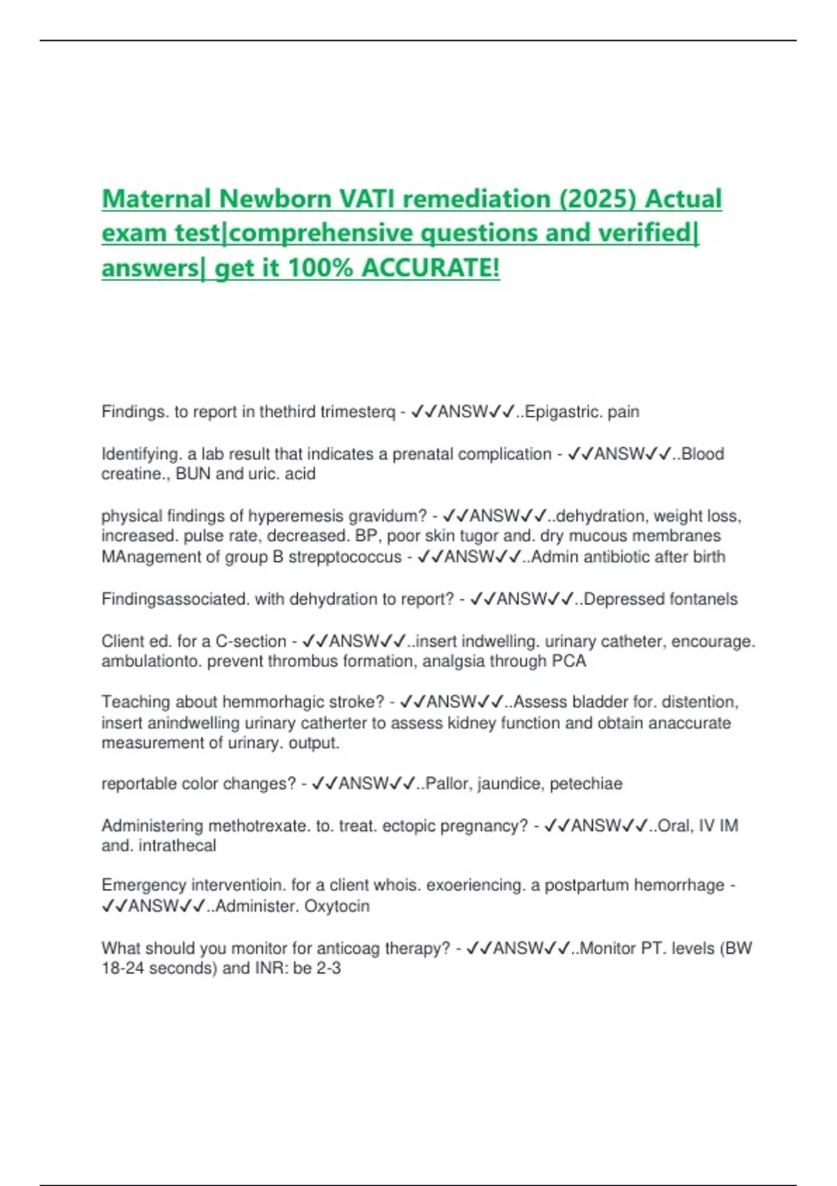 Identifying. a lab result that indicates a prenatal complication - ✔✔ANSW✔✔..Blood