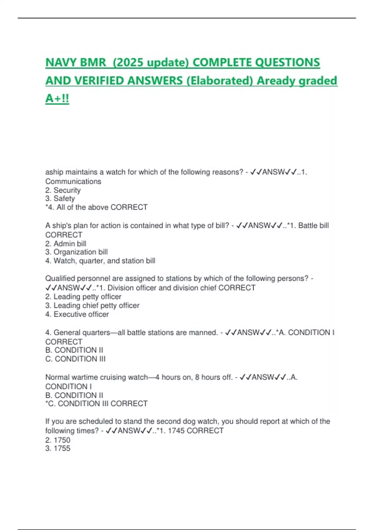 aship maintains a watch for which of the following reasons? - ✔✔ANSW✔✔..1.