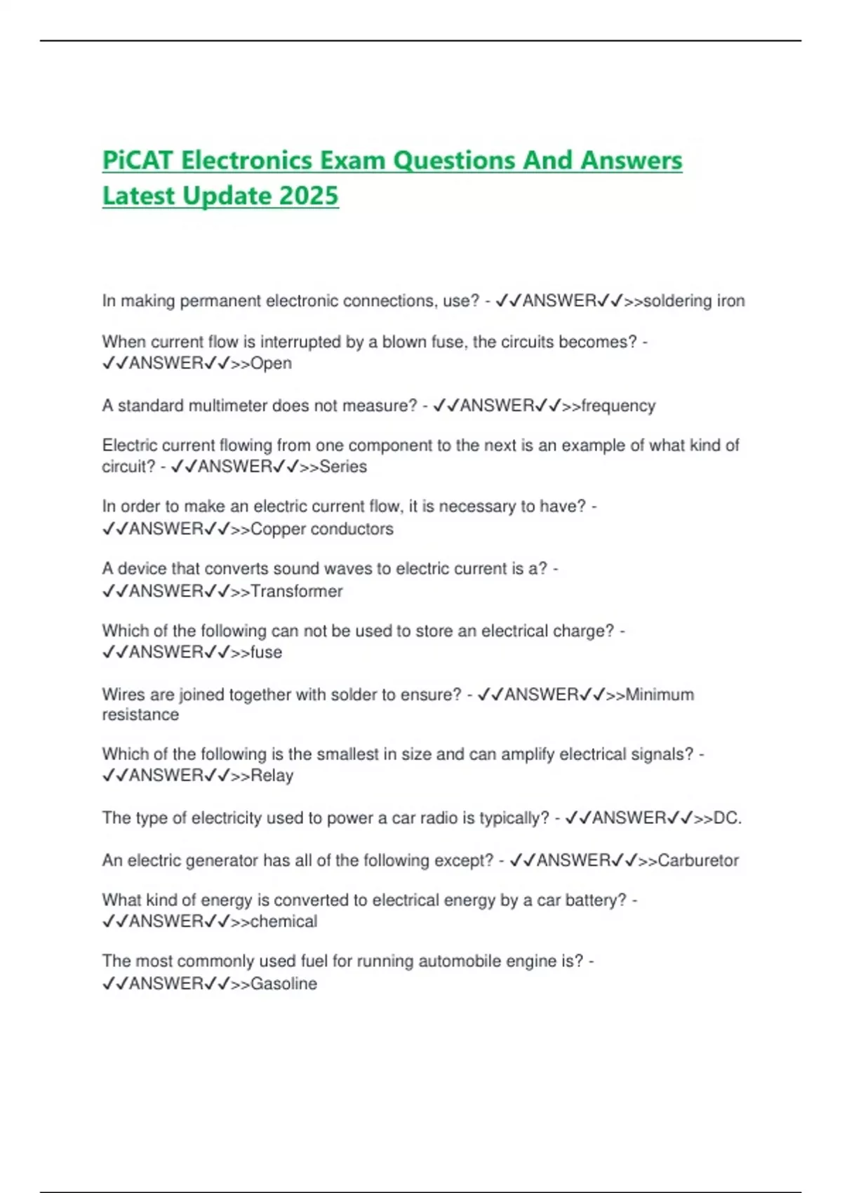 Wires are joined together with solder to ensure? - ✔✔ANSWER✔✔>>Minimum