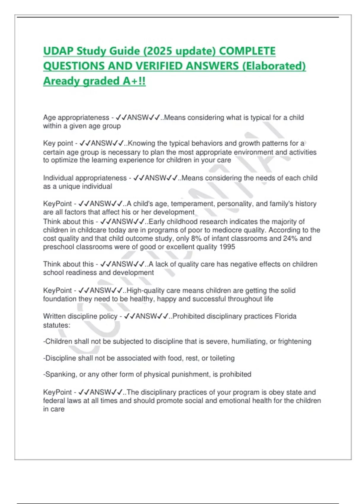KeyPoint - ✔✔ANSW✔✔..High-quality care means children are getting the solid