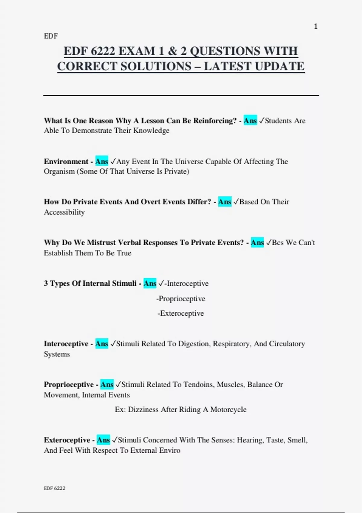 EDF 6222 EXAM 1 & 2 QUESTIONS WITH CORRECT SOLUTIONS – LATEST UPDATE