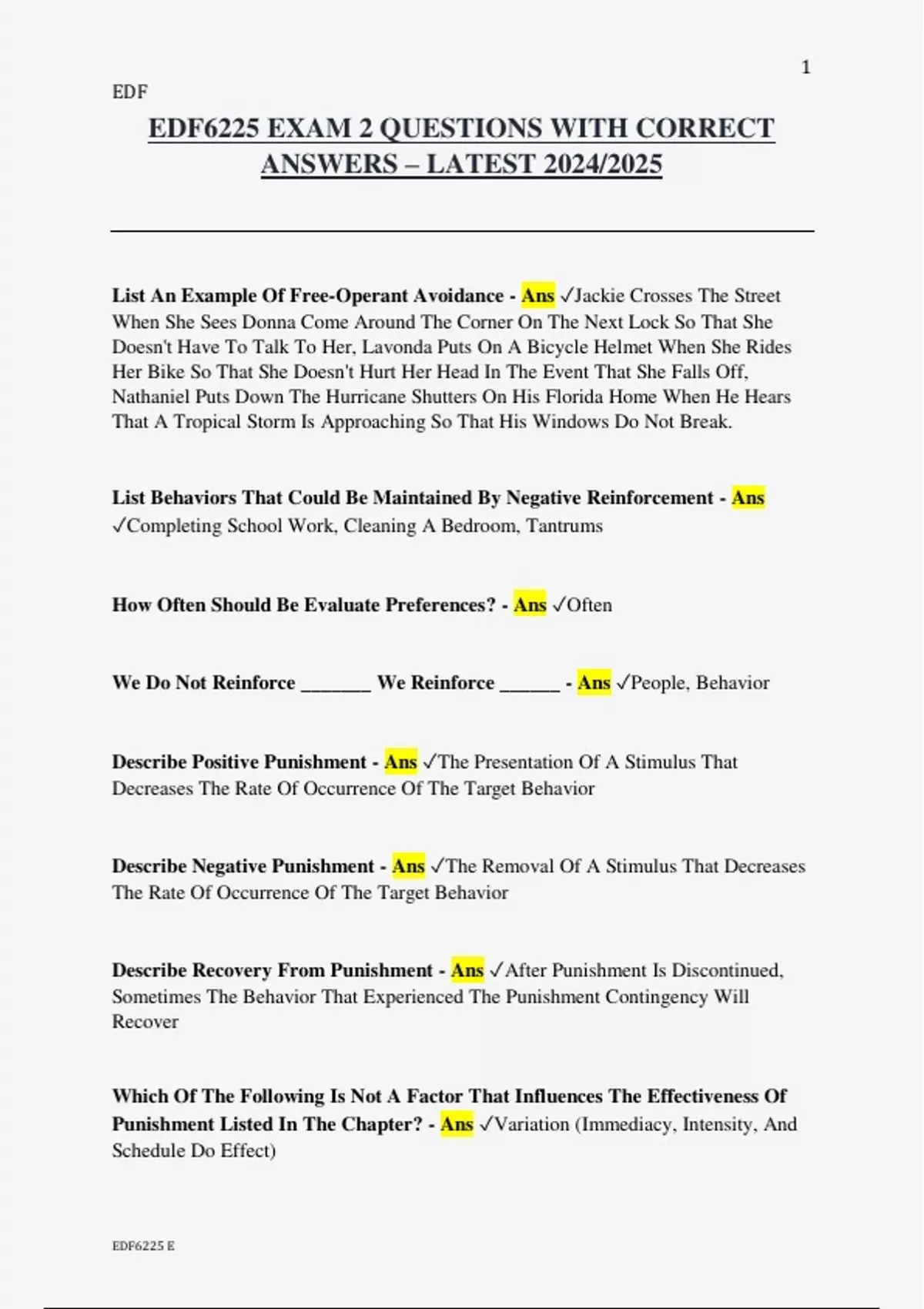 EDF6225 EXAM 2 QUESTIONS WITH CORRECT