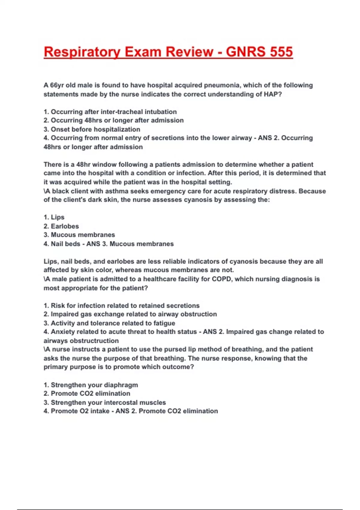 Respiratory Exam Review - GNRS 555