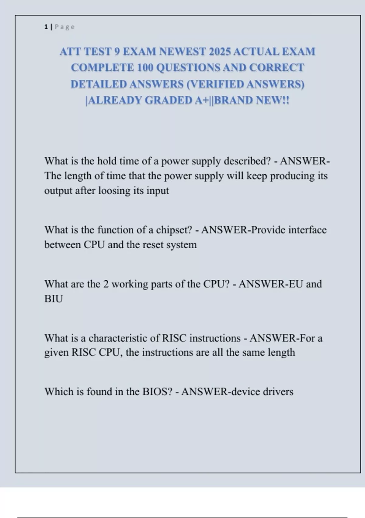 ATT TEST 9 EXAM NEWEST 2025 ACTUAL EXAM