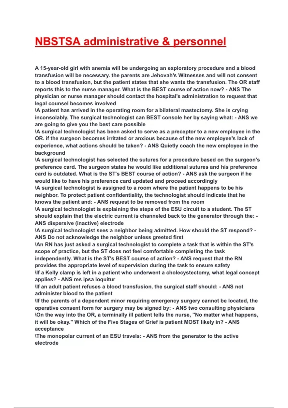 to a blood transfusion, but the patient states that she wants the transfusion. The OR staff