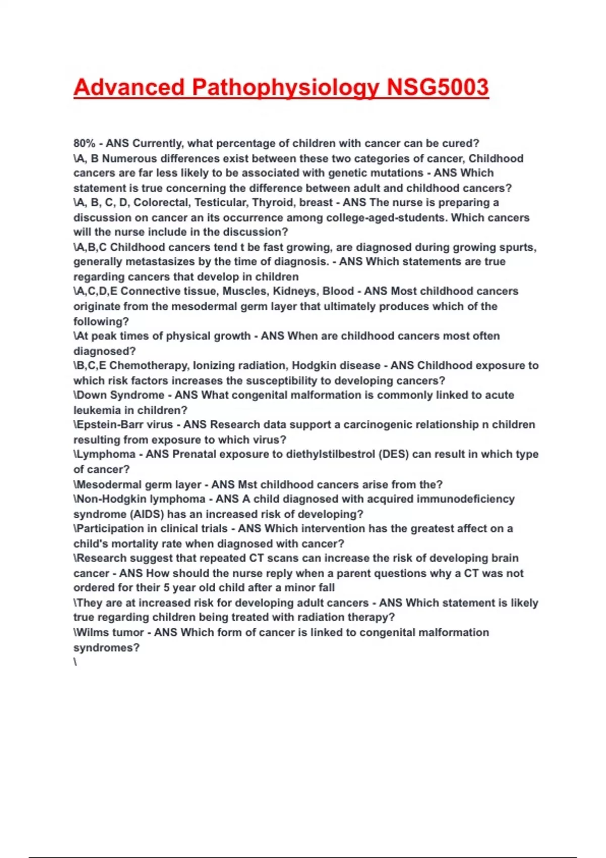 Advanced Pathophysiology NSG5003 Exam 2025/2026 Questions With Completed & Verified Solutions.