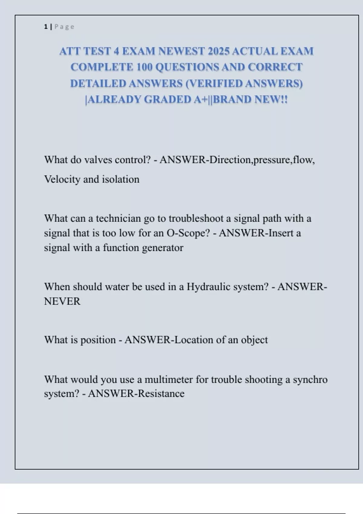 ATT TEST 4 EXAM NEWEST 2025 ACTUAL EXAM