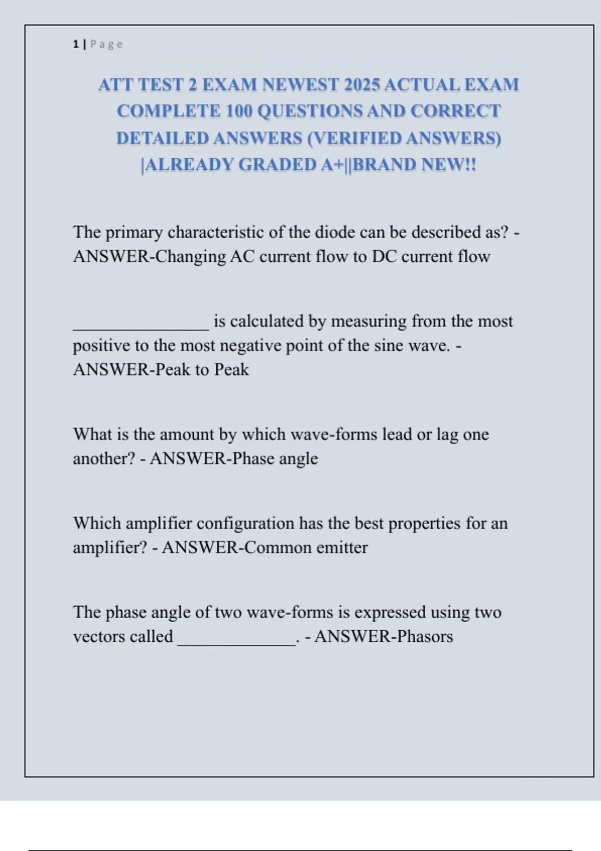 ATT TEST 2 EXAM NEWEST 2025 ACTUAL EXAM COMPLETE 100 QUESTIONS AND CORRECT DETAILED ANSWERS (VERIFIED ANSWERS) |ALREADY GRADED A+||BRAND NEW!!