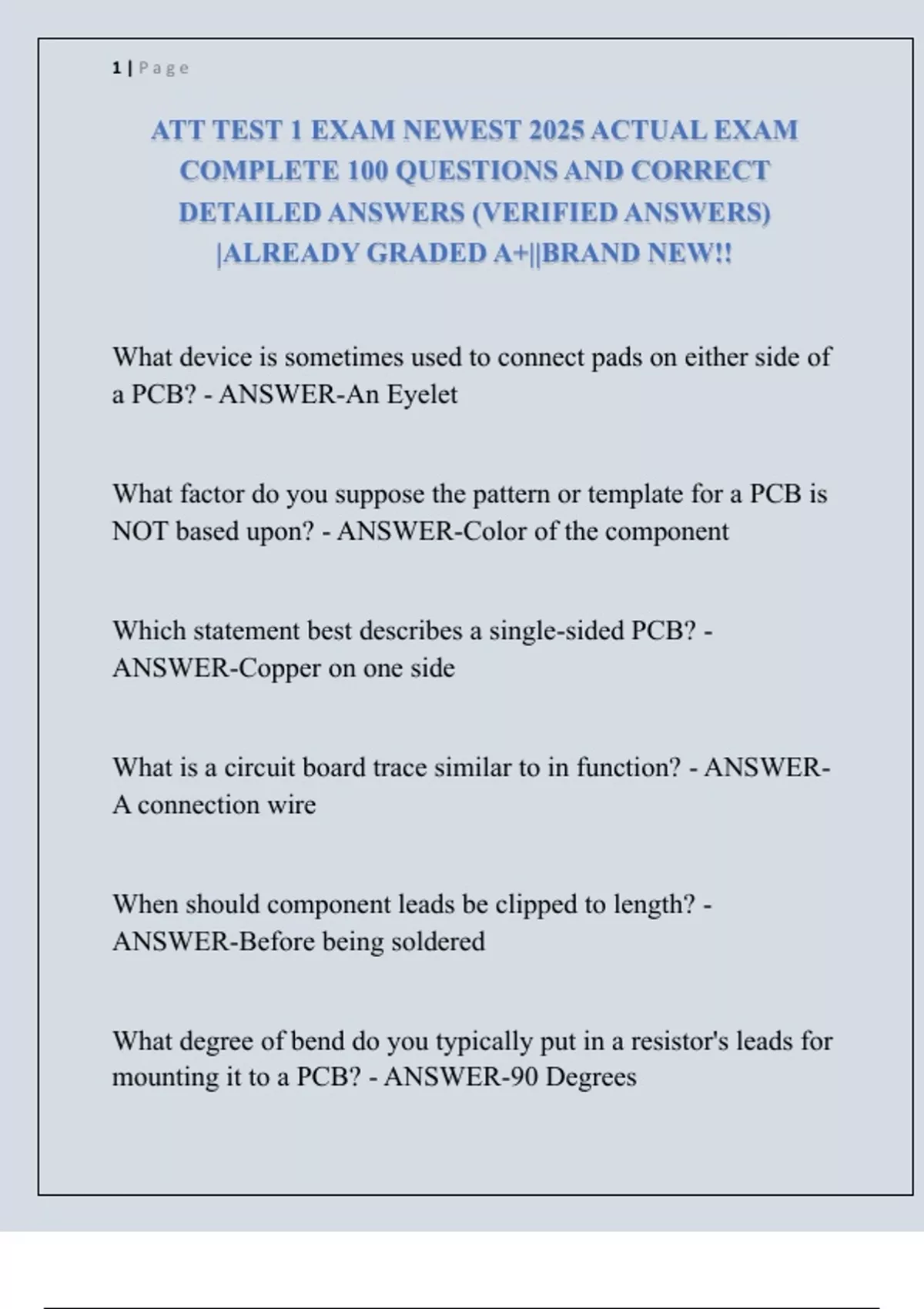 ATT TEST 1 EXAM NEWEST 2025 ACTUAL EXAM