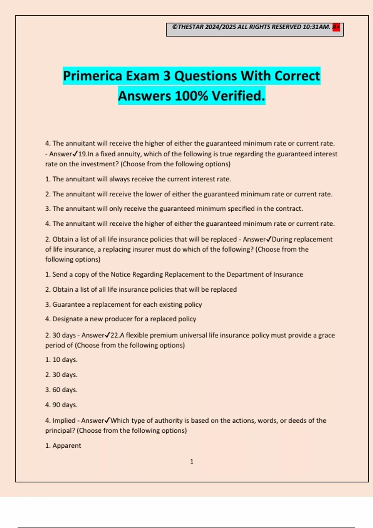 - Answer✔19.In a fixed annuity, which of the following is true regarding the guaranteed interest