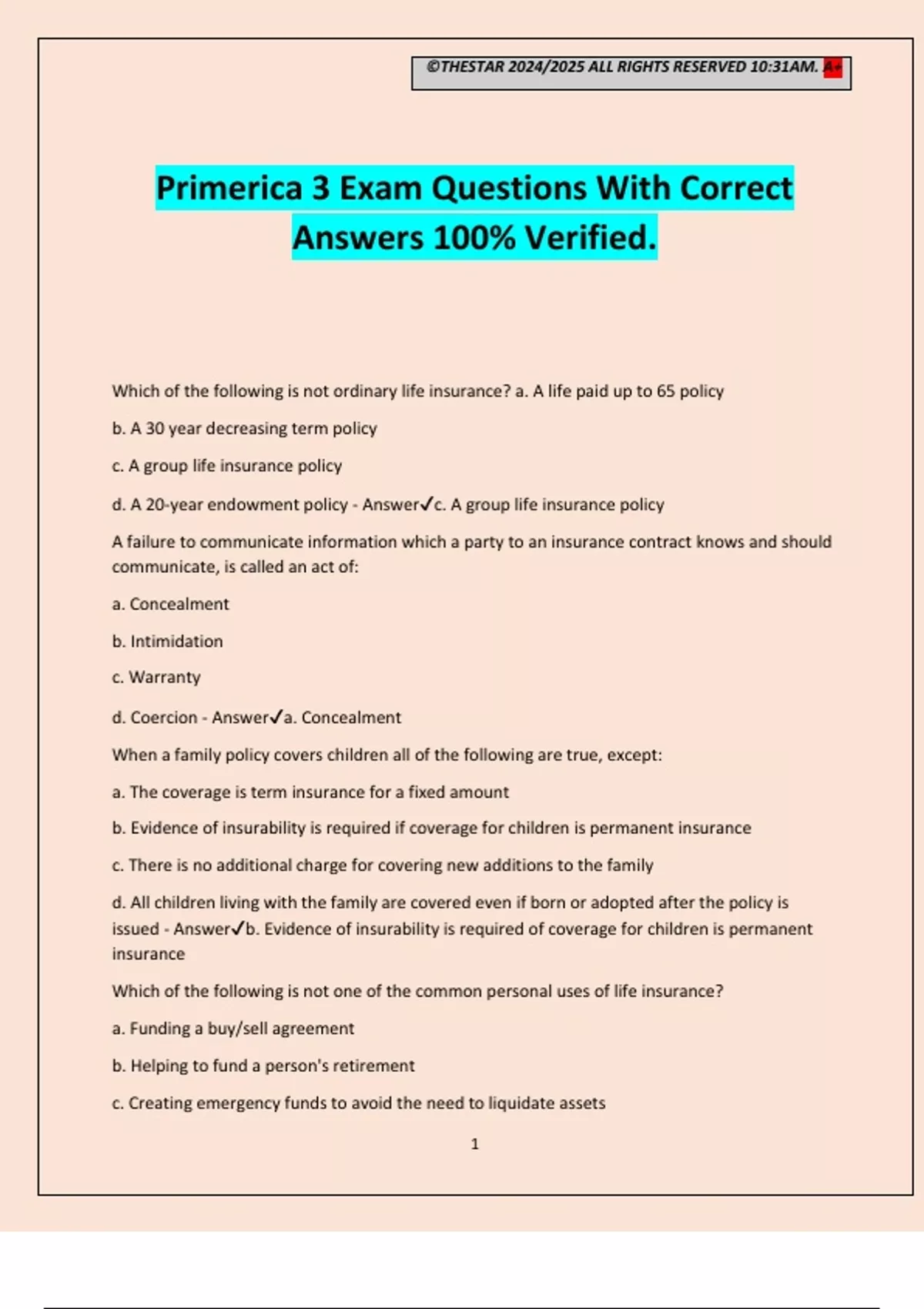 Primerica 3 Exam Questions With Correct