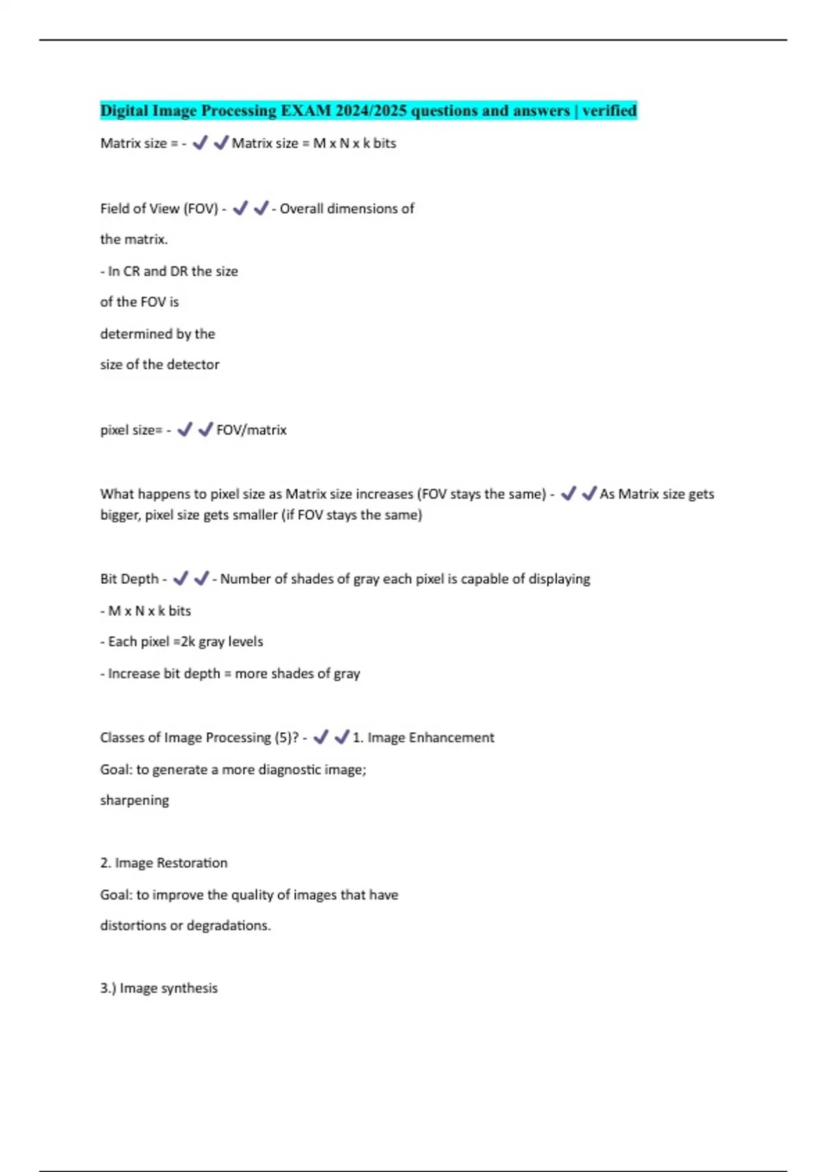 Digital Image Processing EXAM 2024/2025 questions and answers | verified