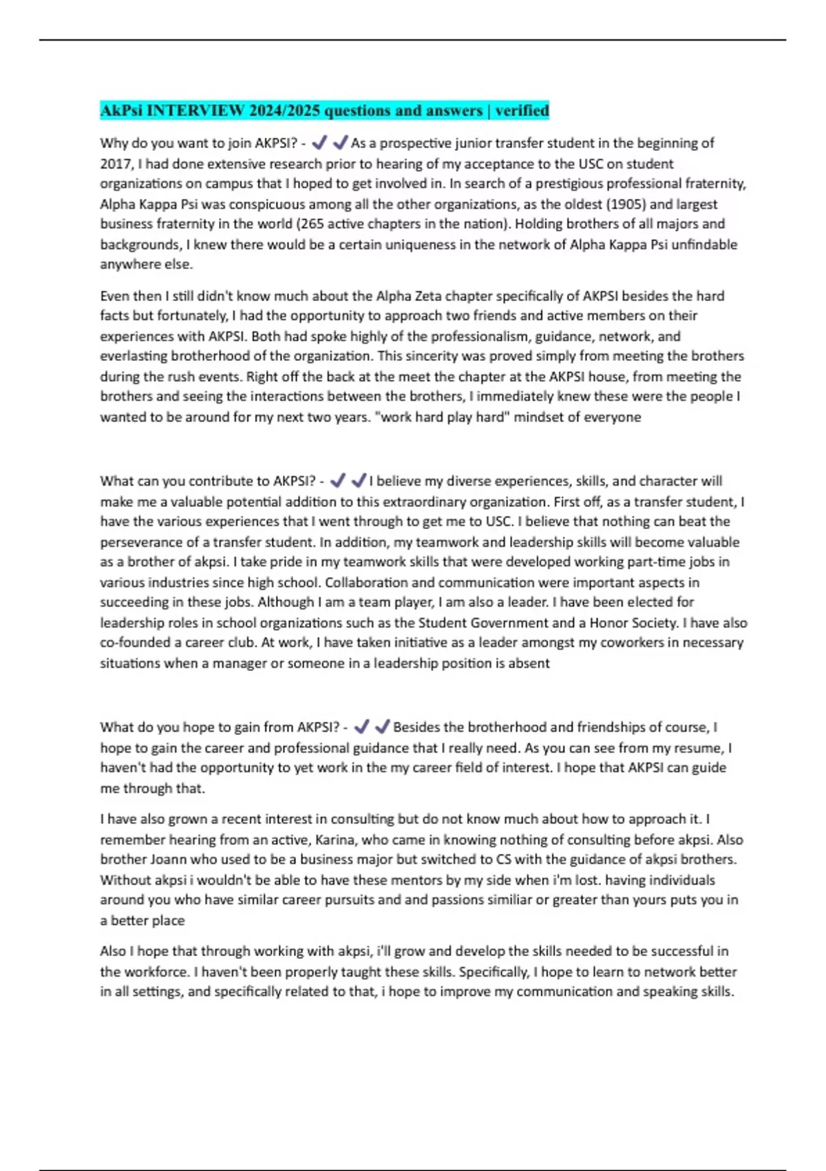 AkPsi INTERVIEW 2024/2025 questions and answers | verified