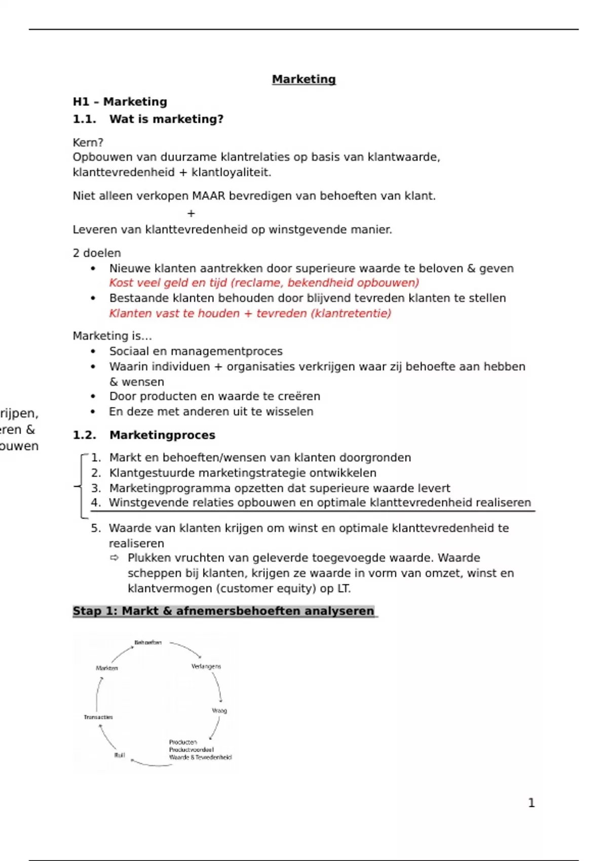 Samenvatting marketing 1e jaars bedrijfsmanagement