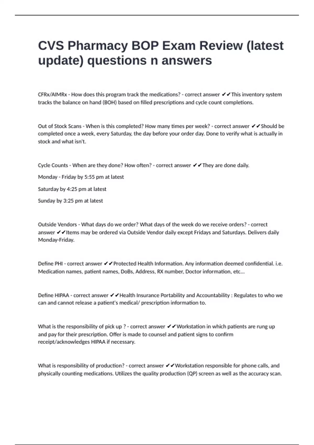 Medicare Part D covers - correct answer ✔✔prescription drugs. Most commonly used insurance at CVS.