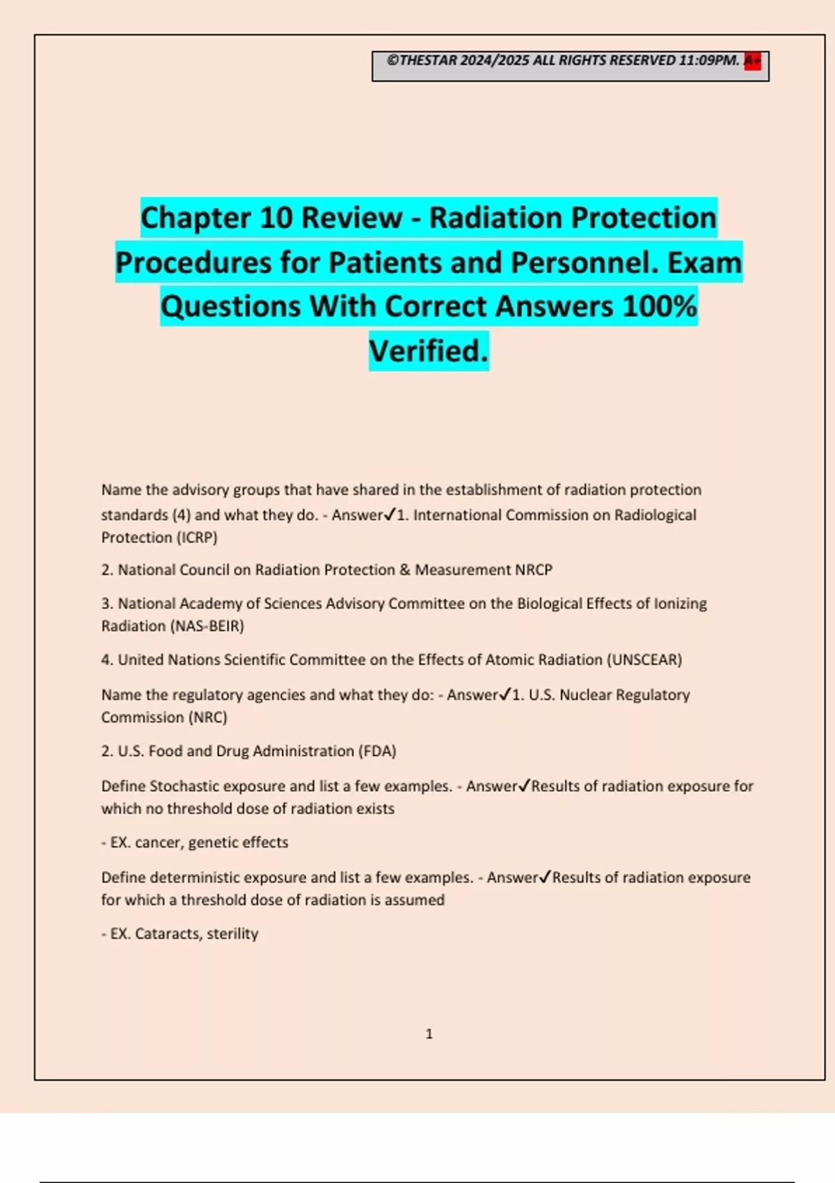 Define deterministic exposure and list a few examples. - Answer✔Results of radiation exposure
