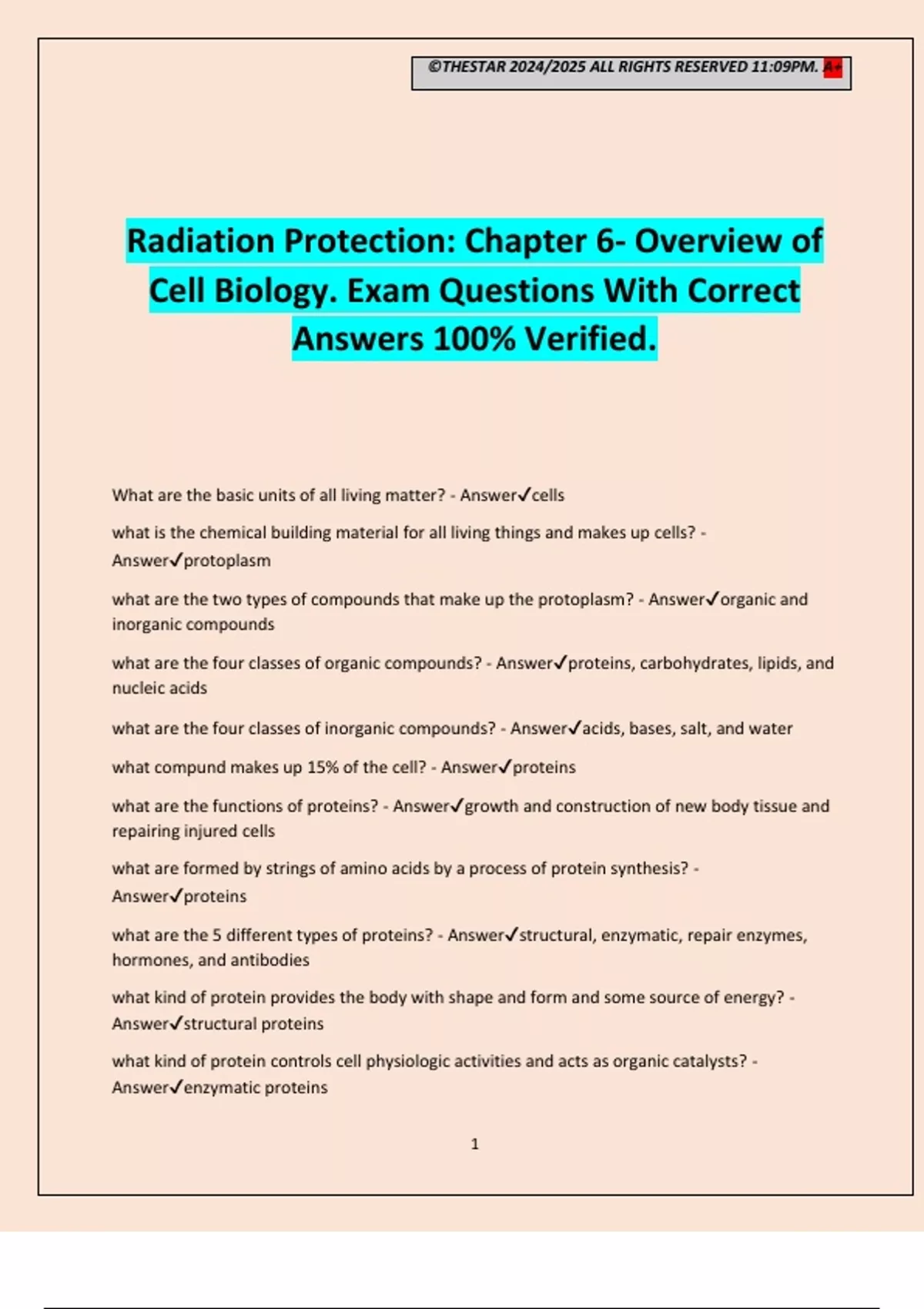 Cell Biology. Exam Questions With Correct