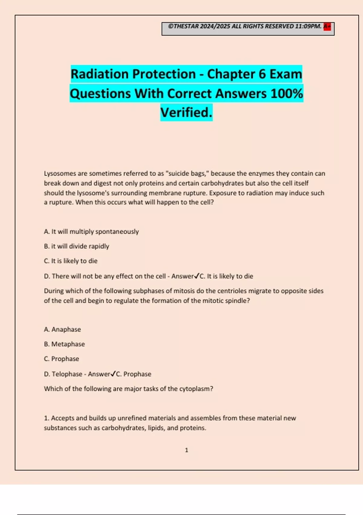D. Telophase - Answer✔C. Prophase