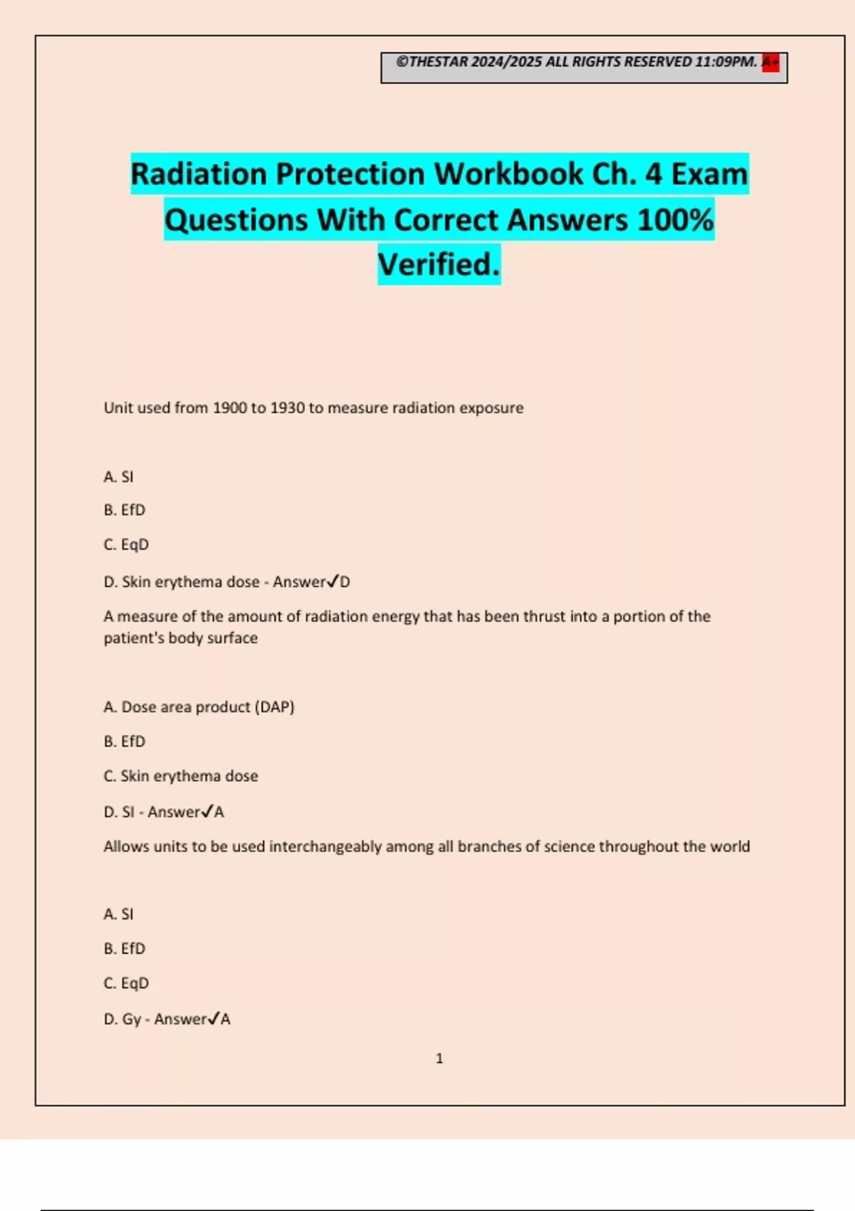 D. Skin erythema dose - Answer✔D