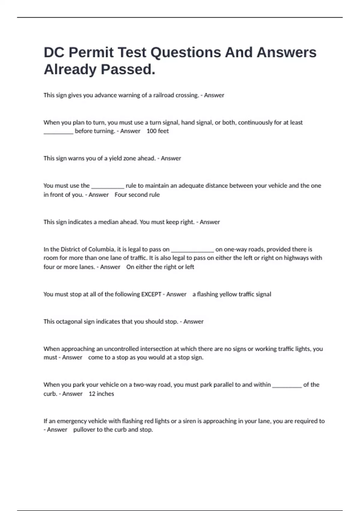 _________ before turning. - Answer 100 feet