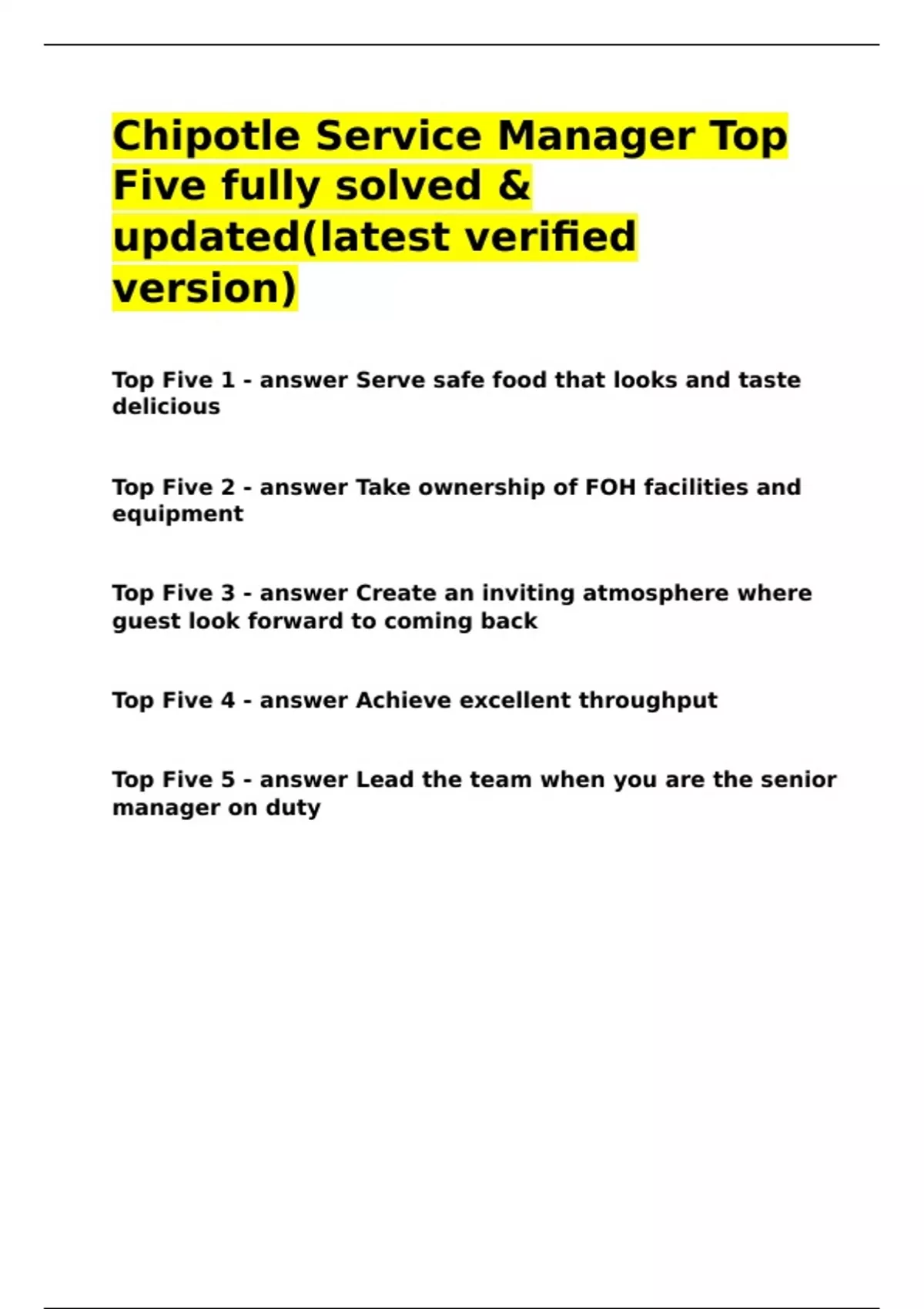 Top Five 1 - answer Serve safe food that looks and taste