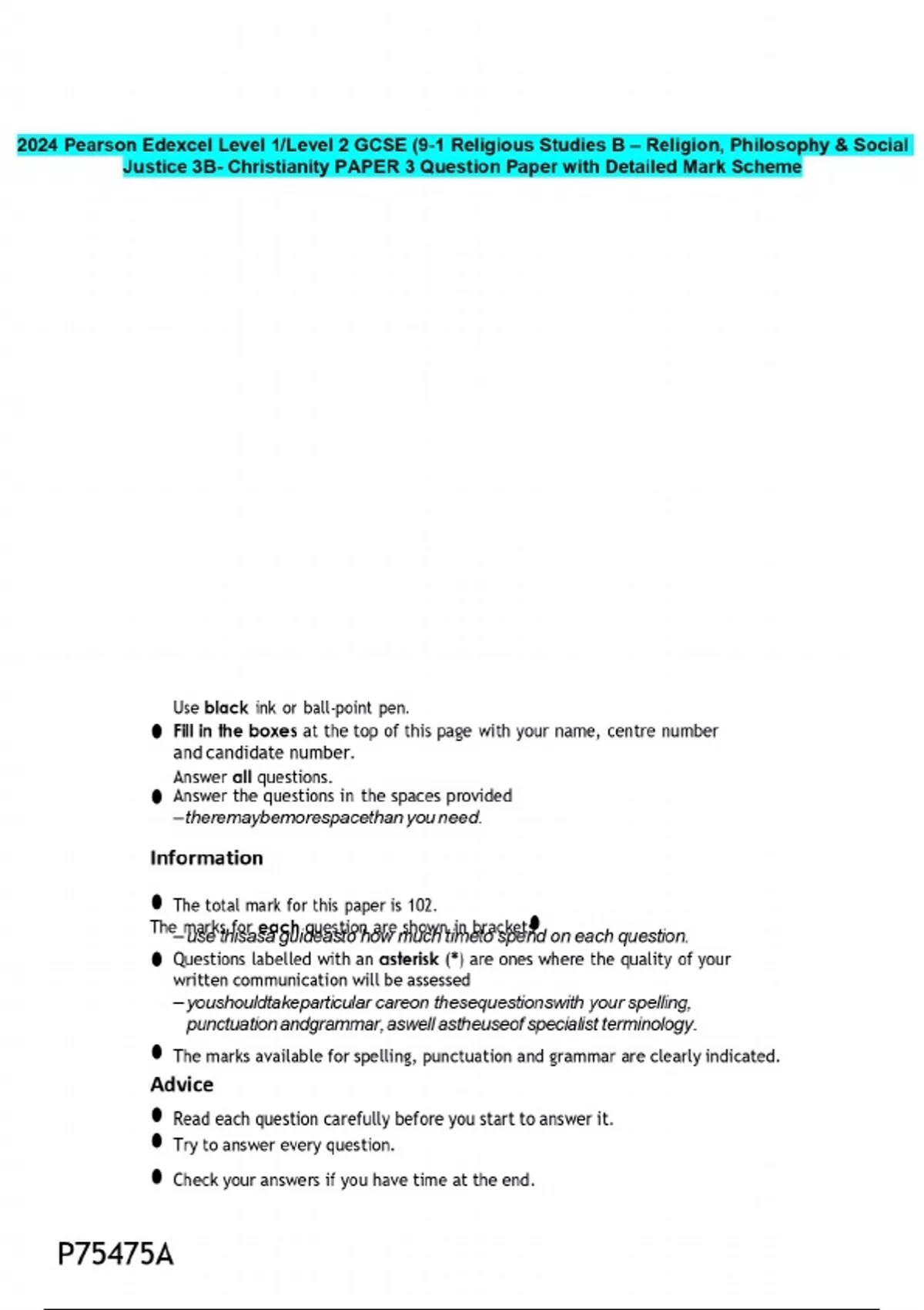 2024 Pearson Edexcel Level 1/Level 2 GCSE (9-1 Religious Studies B – Religion, Philosophy & Social Justice 3B- Christianity PAPER 3 Question Paper with Detailed Mark Scheme
