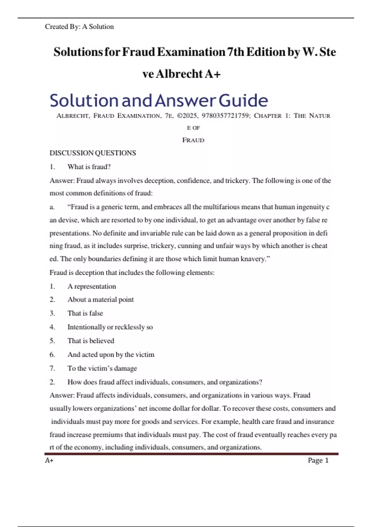 Solutions for Fraud Examination 7th Edition by W. Ste