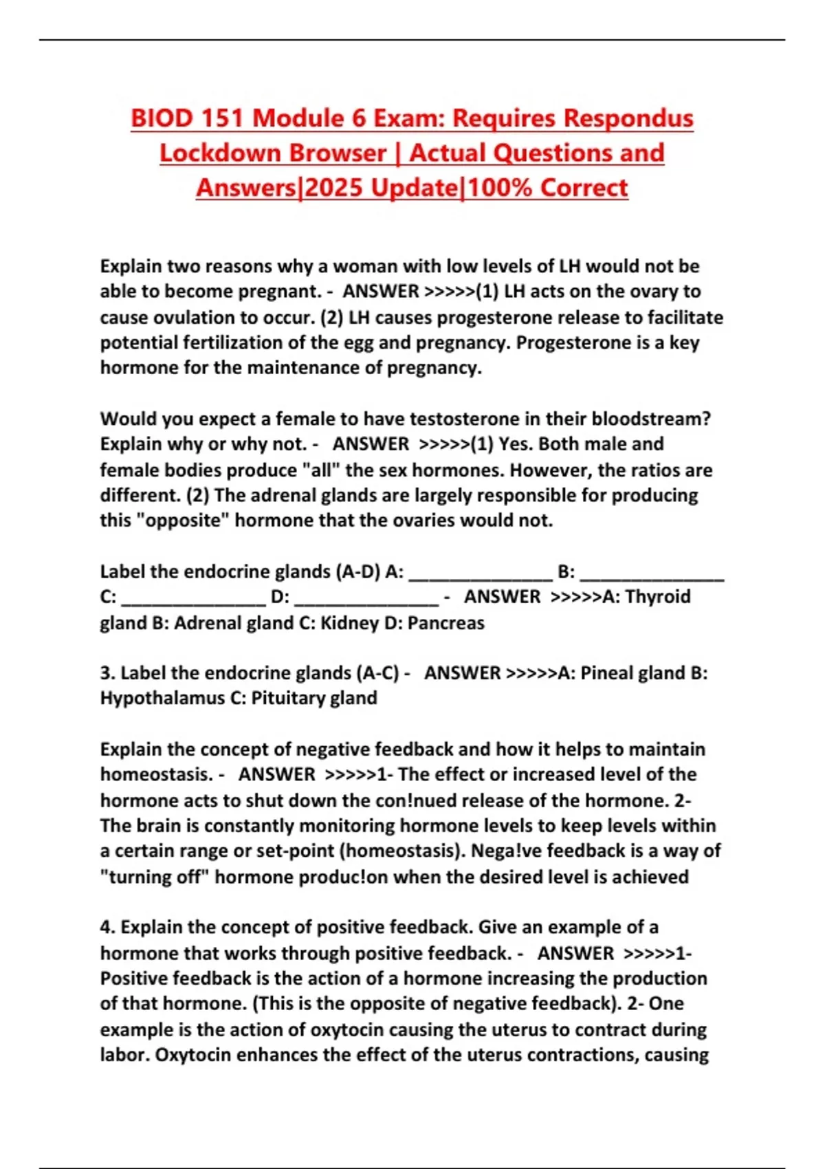 hormone that works through positive feedback. - ANSWER >>>>>1-
