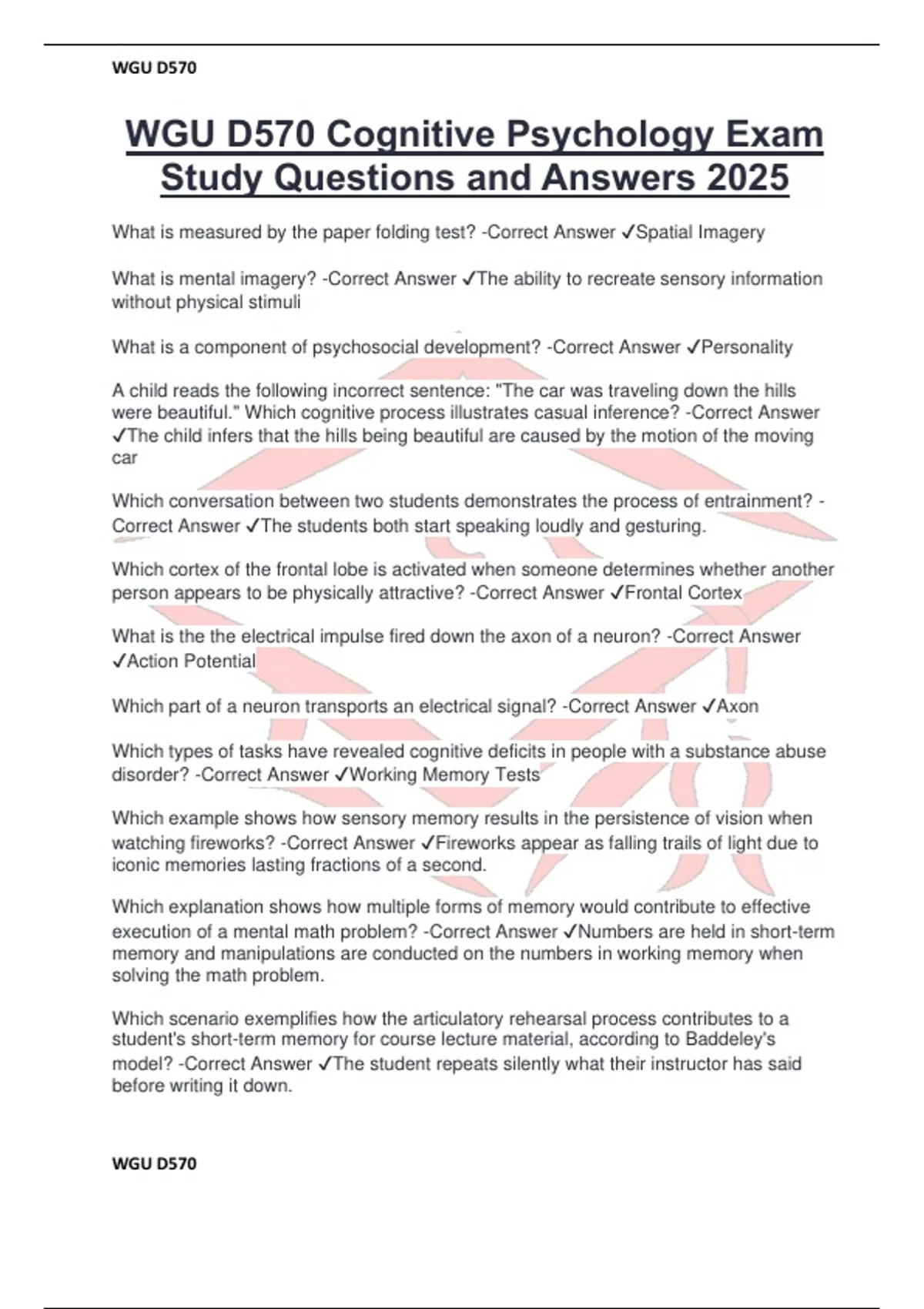 WGU D570 Cognitive Psychology Exam