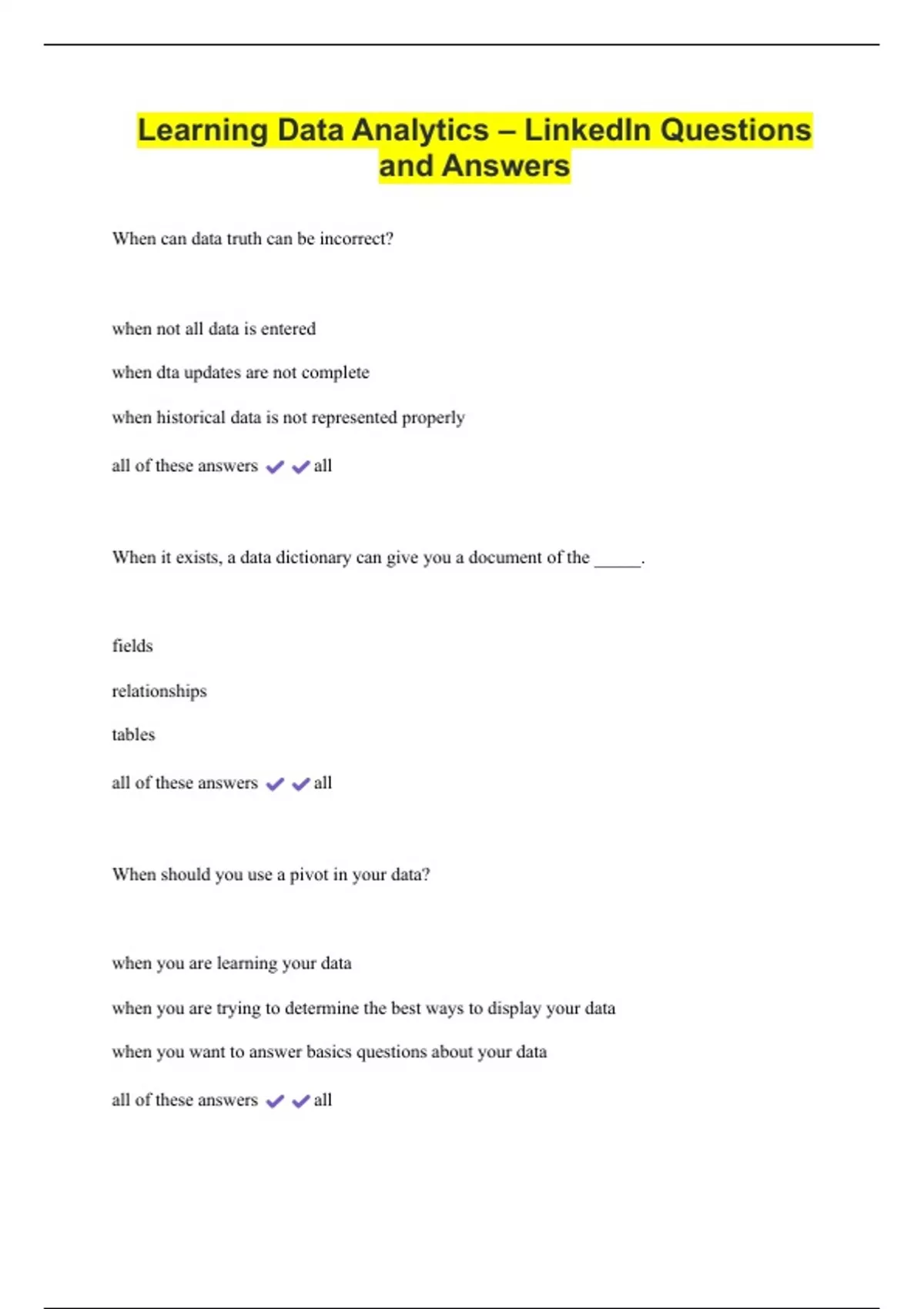 Learning Data Analytics – LinkedIn Questions