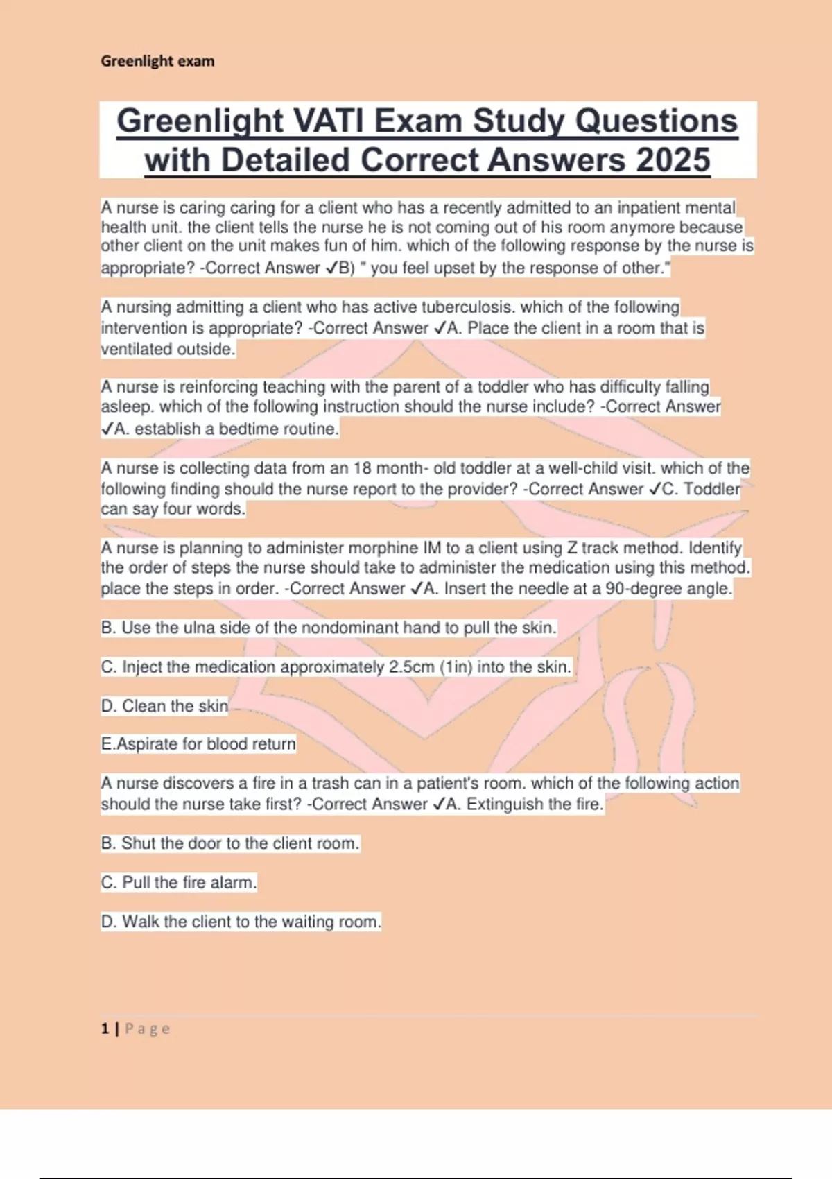 Greenlight VATI Exam Study Questions