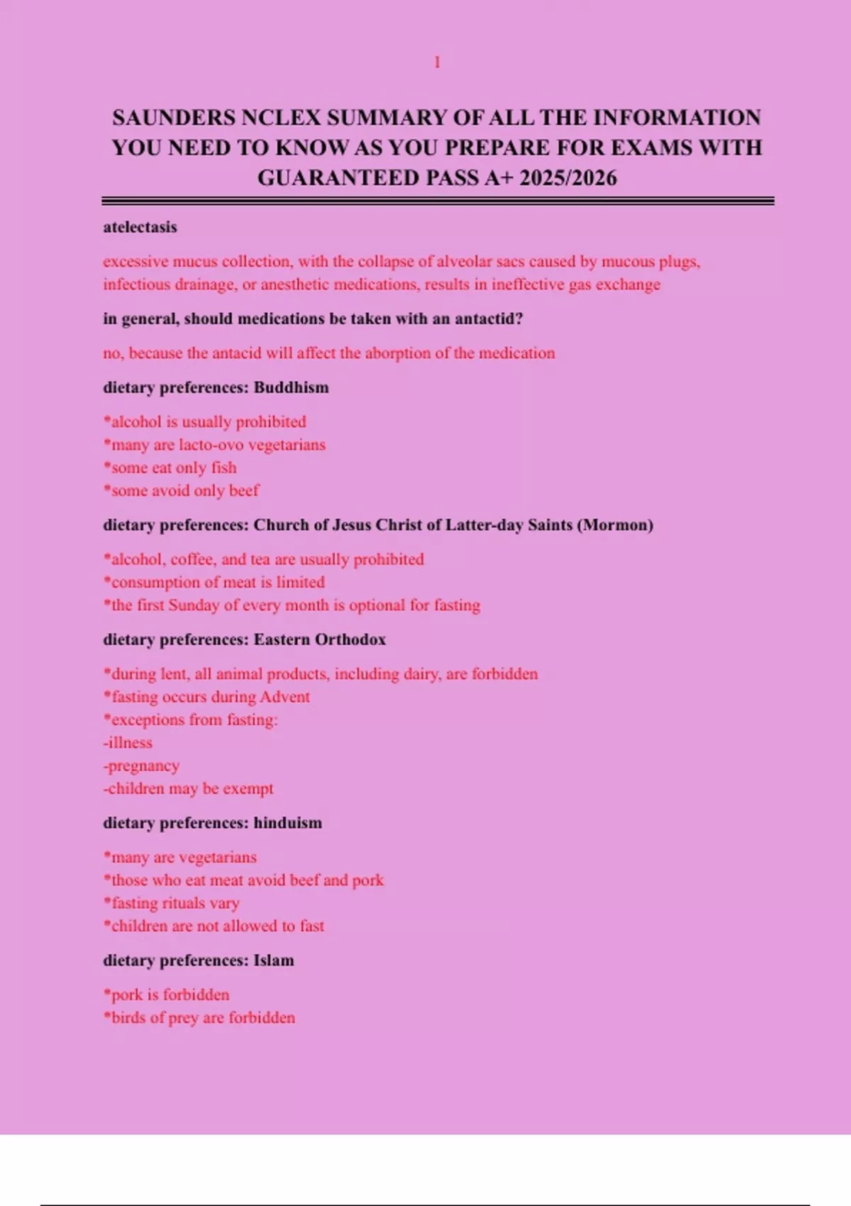 SAUNDERS NCLEX SUMMARY OF ALL THE INFORMATION